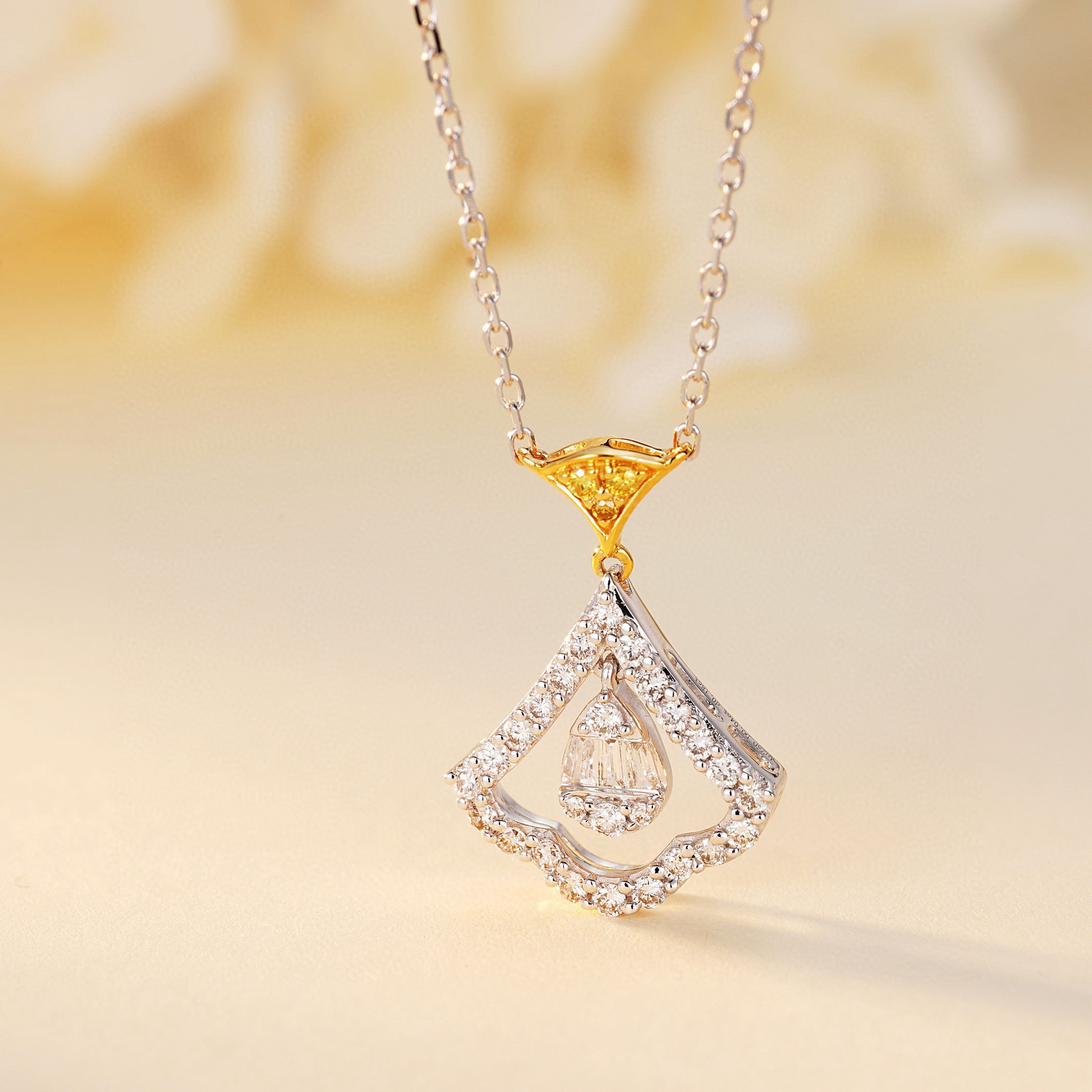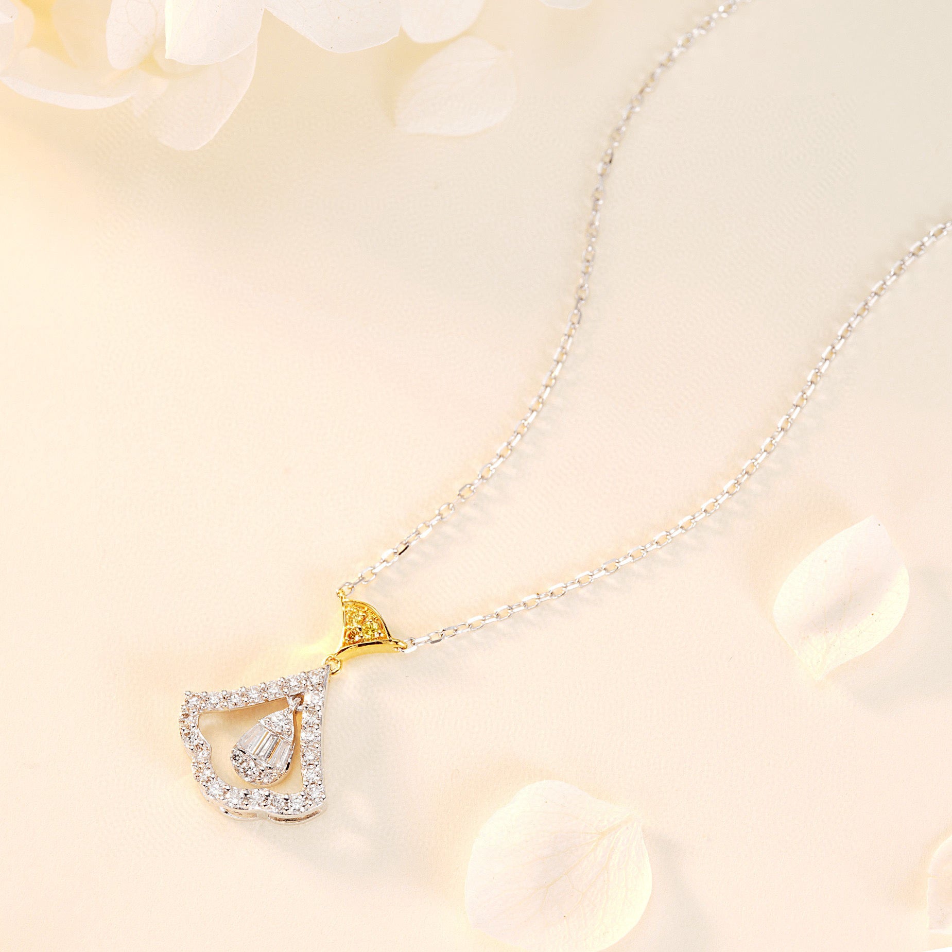 14K GOLD 0.22 CTW NATURAL YELLOW DIAMOND & DIAMOND PENDANT( WITHOUT CHAIN )