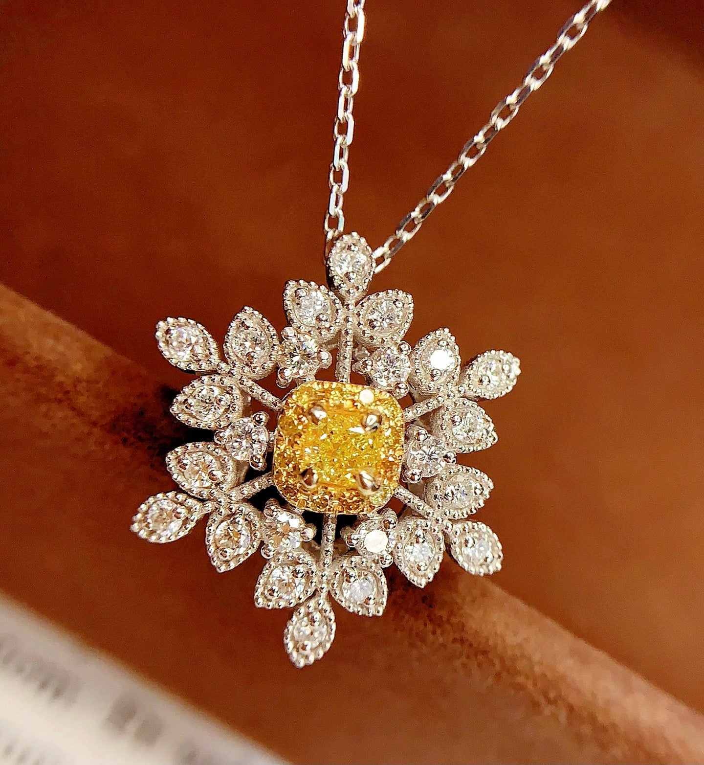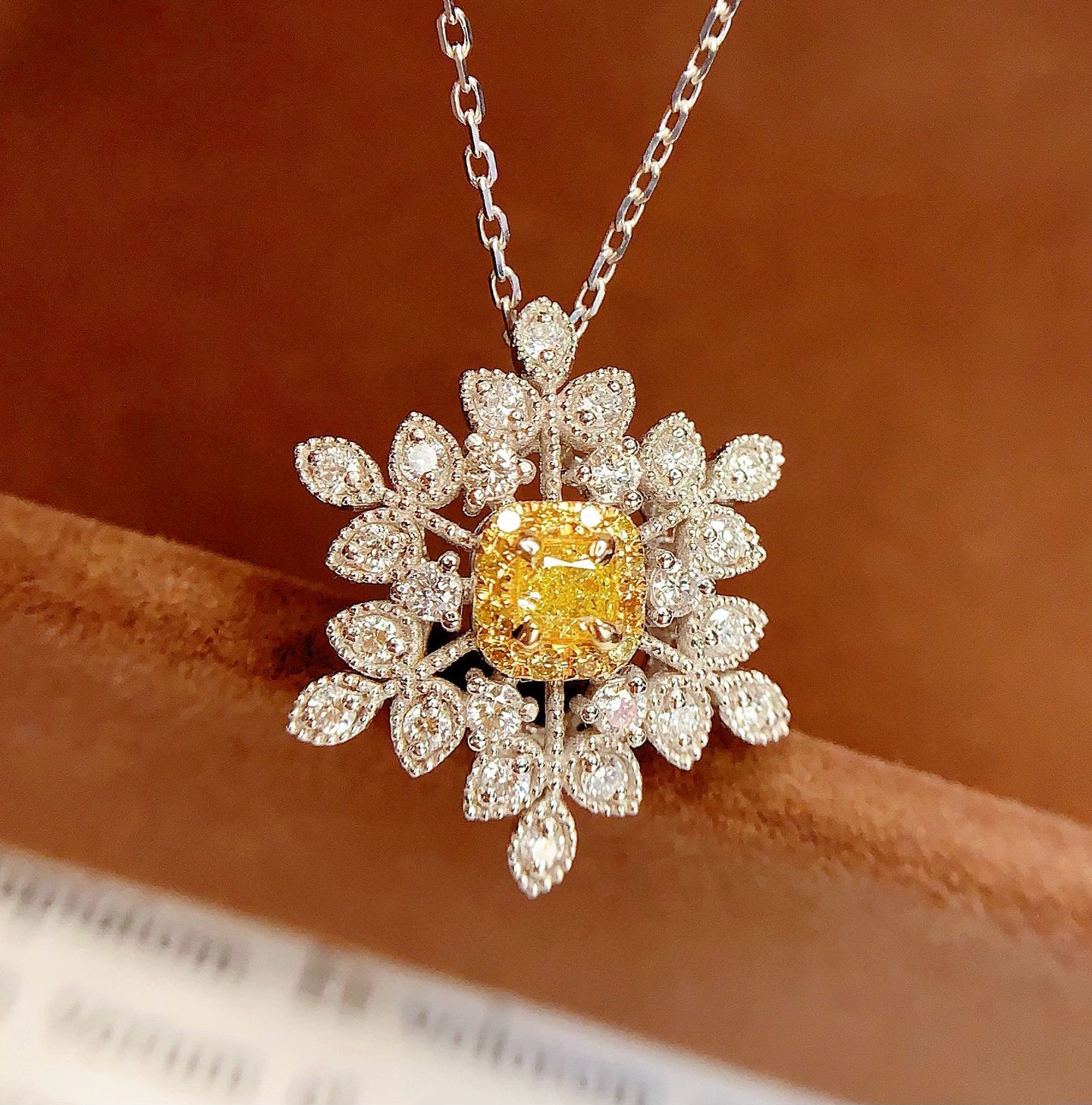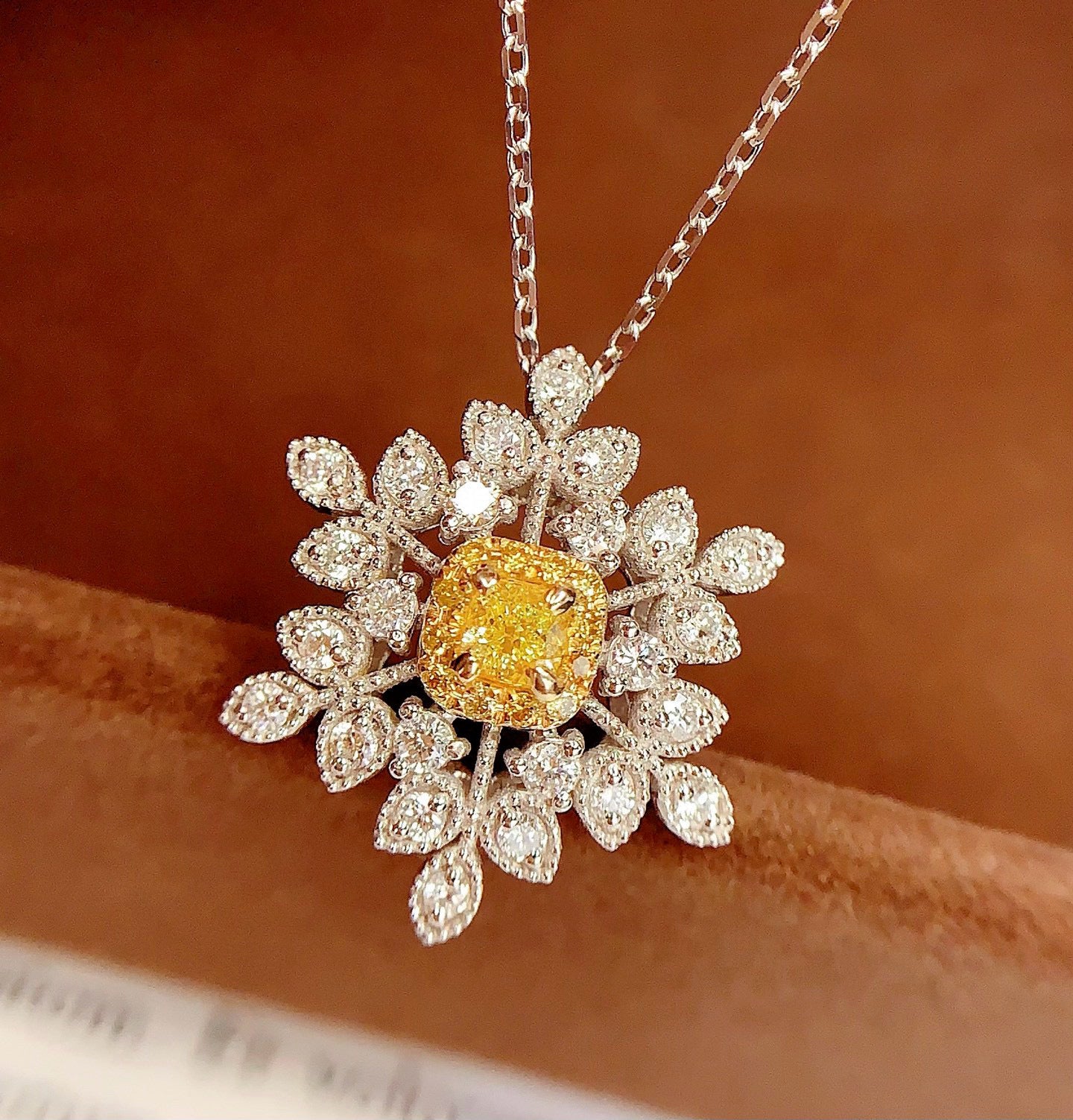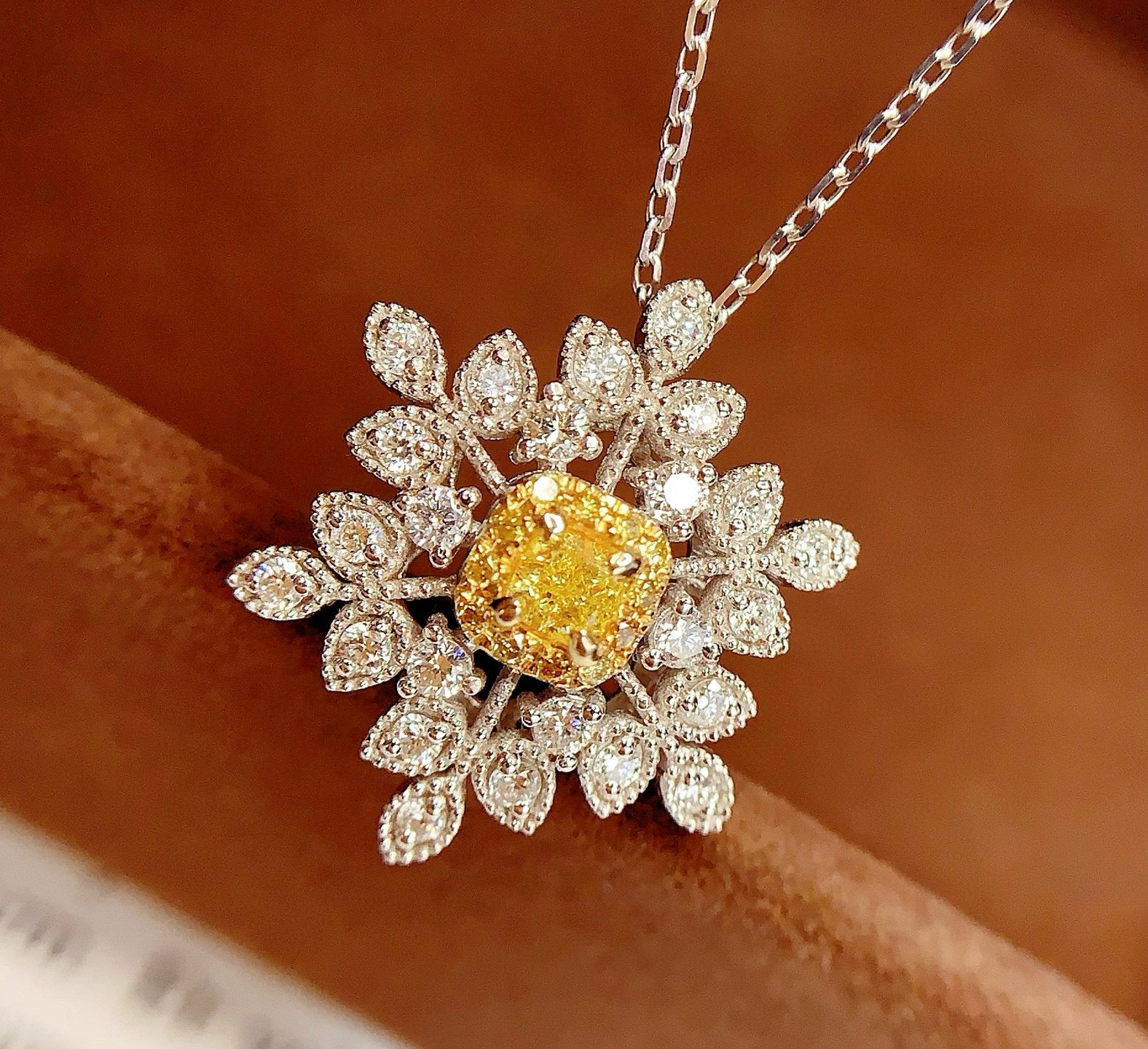 Ref:231025220 // Gold Content:14K Gold // Main Gemstone:Yellow Diamond // Shape:Cushion // Carat Weight:0.27ct // Color:Yellow // Treatment:Natural // // Adjacent Gemstone 2 : Diamond // Number of stones:24 // Shape:Round // Clarity Grade:VS-SI // Color:H // Treatment:Natural // Cut Grade:G //