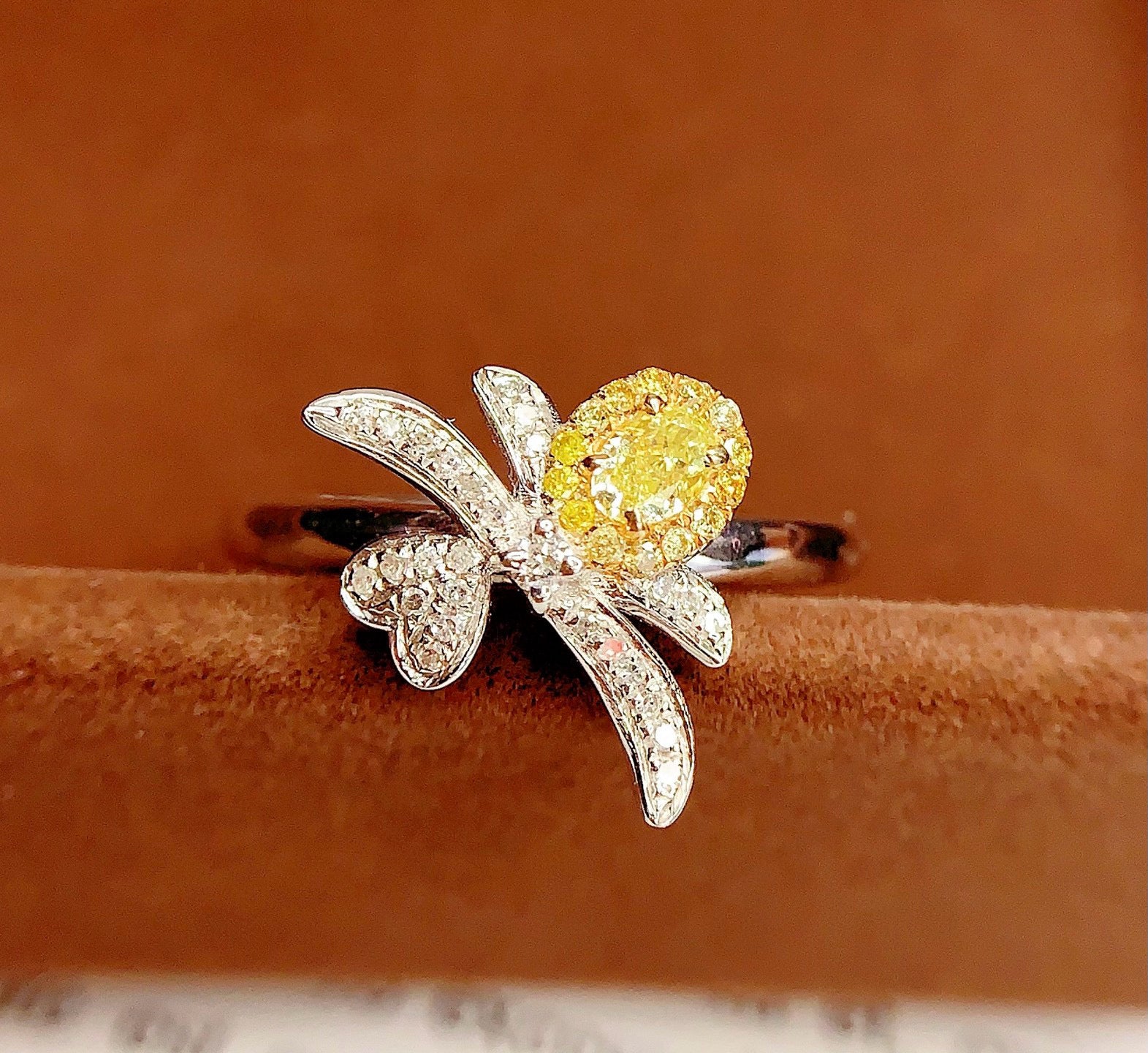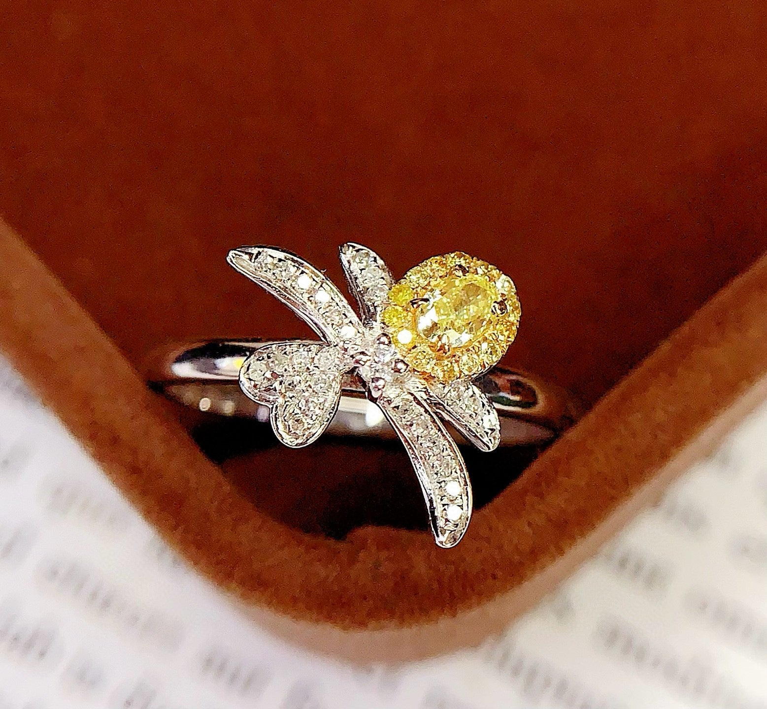 Ref:231025050 // Gold Content:14K Gold // Ring Size:7.25US // // Main Gemstone:Yellow Diamond // Shape:Oval // Carat Weight:0.28ct // Color:Yellow // Treatment:Natural // // Adjacent Gemstone 2 : Diamond // Number of stones:41 // Shape:Round // Clarity Grade:VS-SI // Color:H // Treatment:Natural // Cut Grade:G //