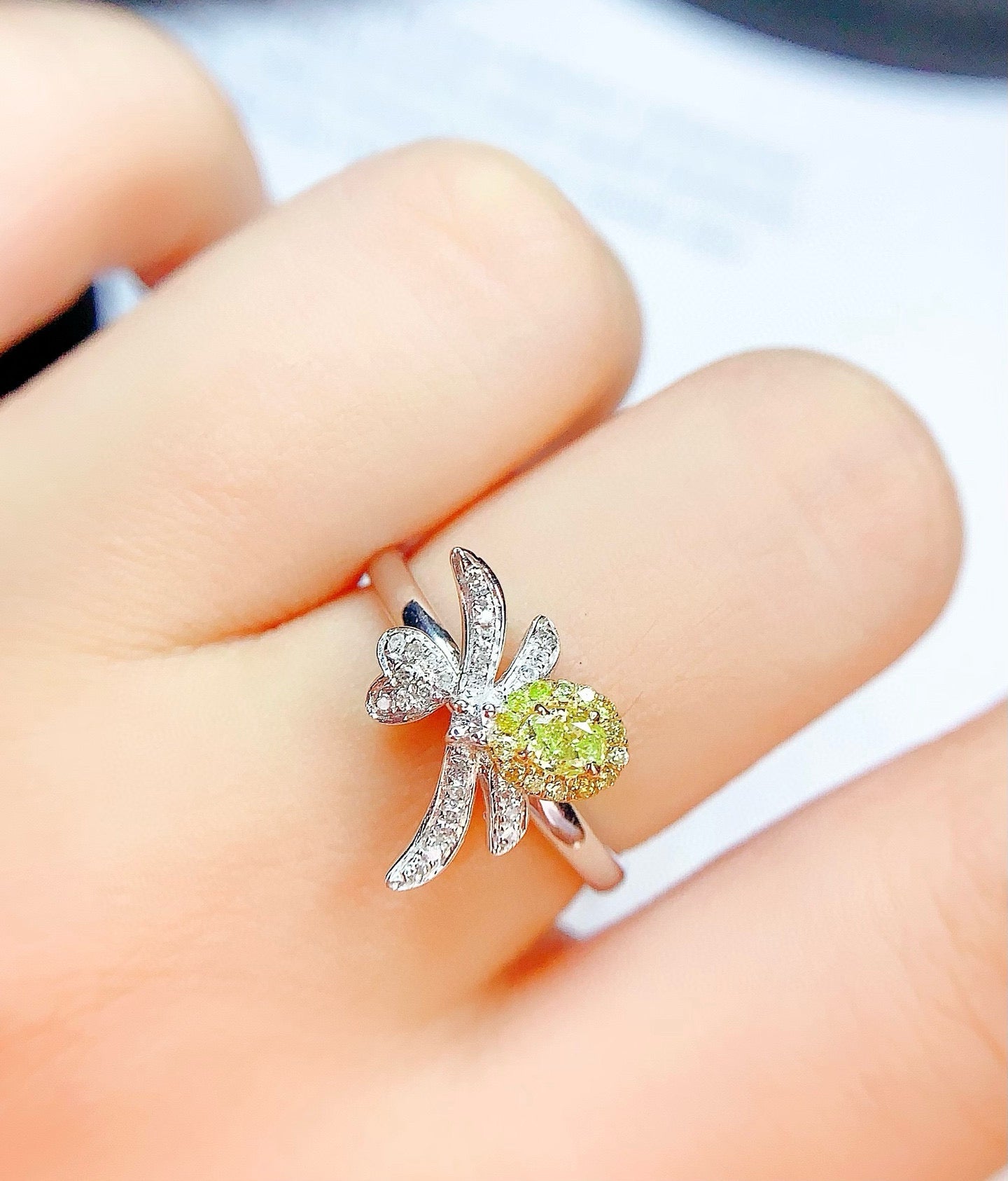 14K GOLD 0.28 CT NATURAL YELLOW DIAMOND & DIAMOND RING