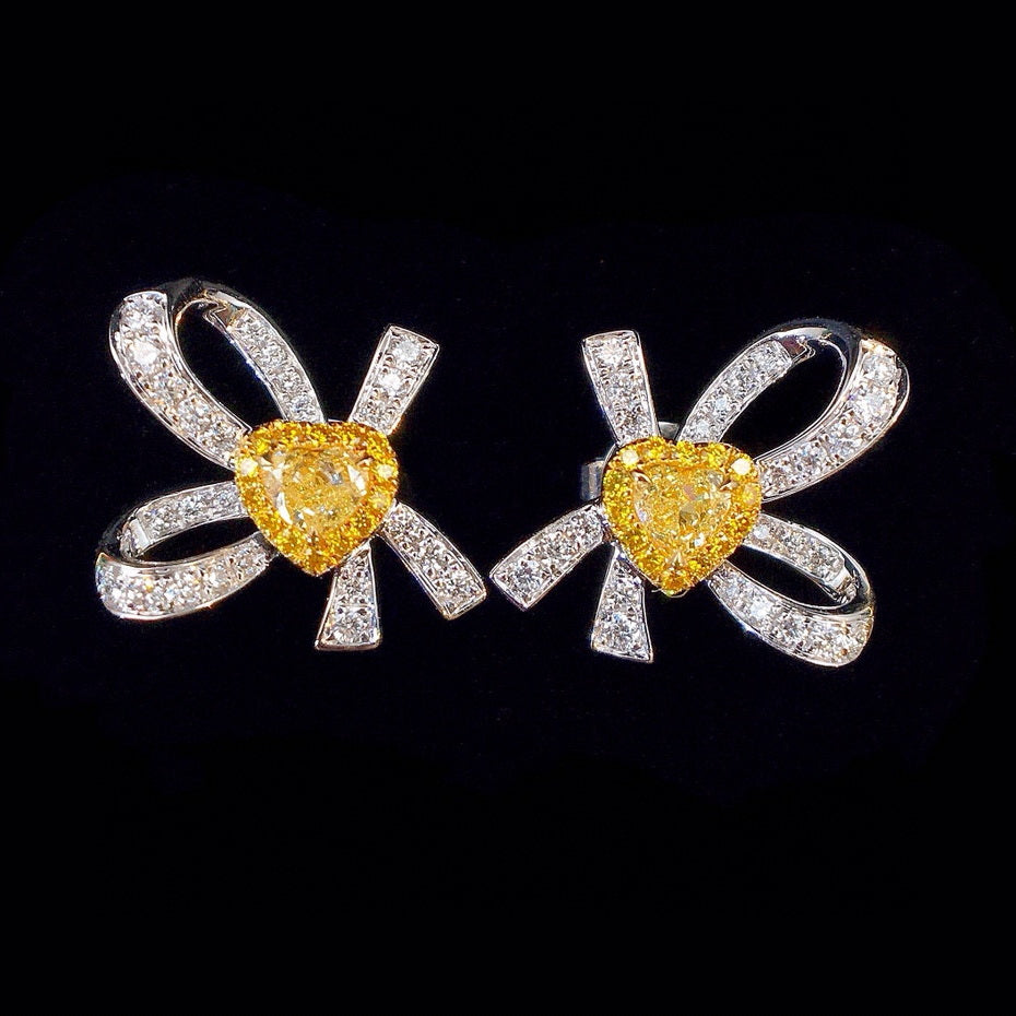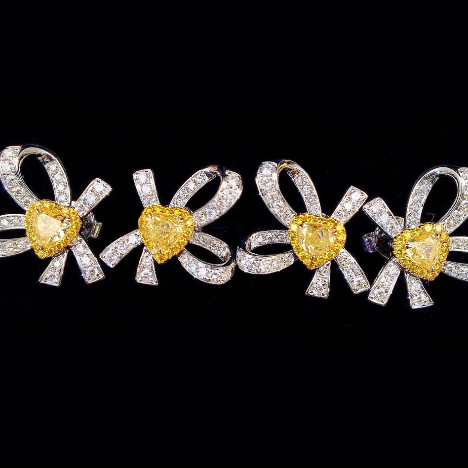 Ref:231023109 // Gold Content:14K Gold // Main Gemstone:Yellow Diamond // Shape:Heart // Carat Weight:0.3ct // Color:Yellow // Treatment:Natural // // Adjacent Gemstone 2 : Diamond // Shape:Round // Clarity Grade:VS-SI // Color:H // Treatment:Natural // Cut Grade:G //