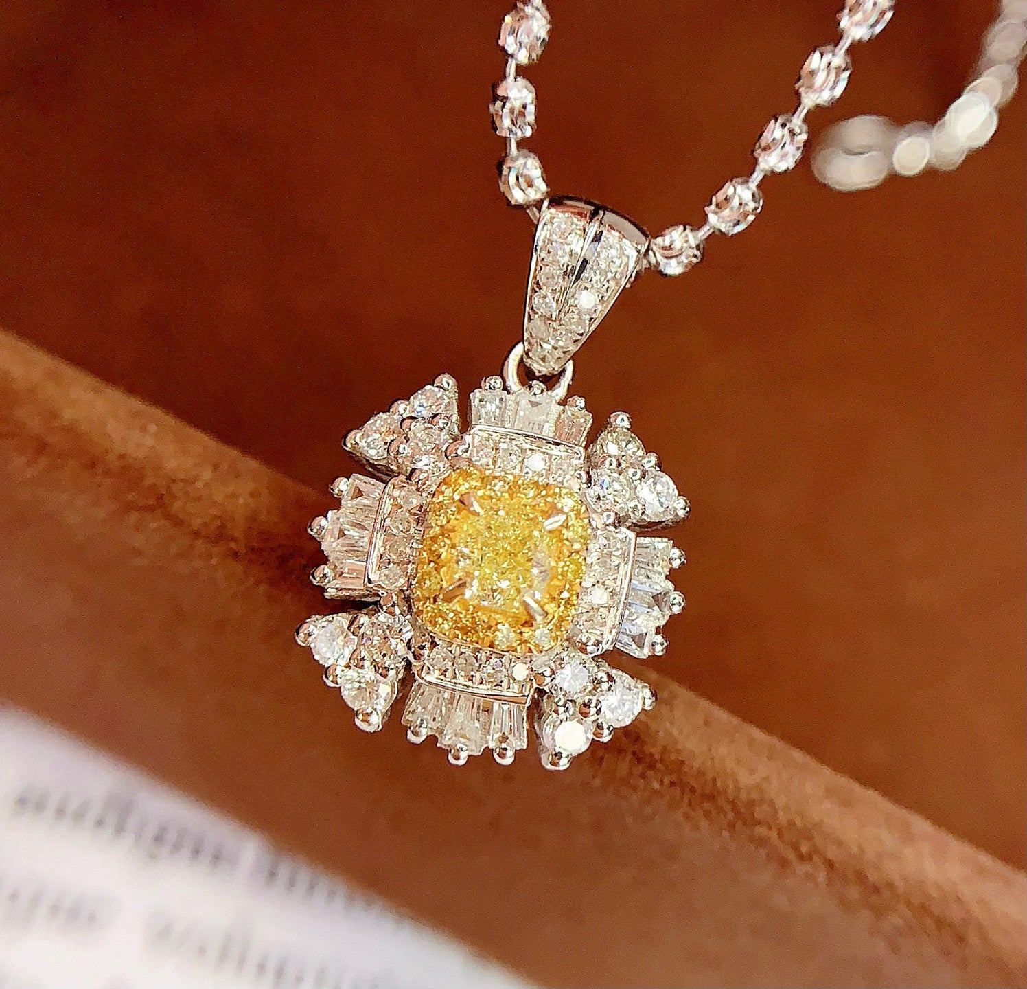 Ref:231025217 // Gold Content:14K Gold // Main Gemstone:Yellow Diamond // Shape:Cushion // Carat Weight:0.3ct // Color:Yellow // Treatment:Natural // // Adjacent Gemstone 2 : Diamond // Number of stones:51 // Shape:Multiply // Clarity Grade:VS-SI // Color:H // Treatment:Natural //