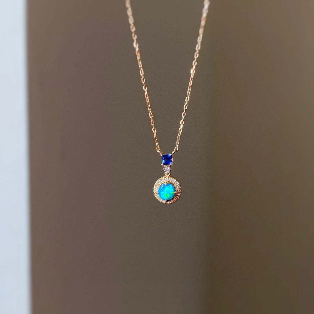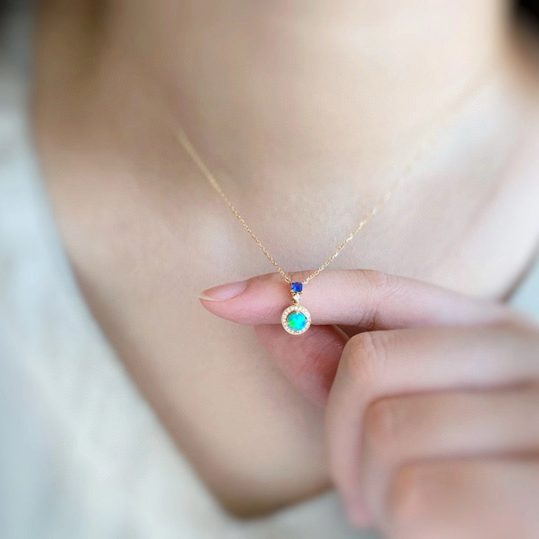 14K GOLD 0.32 CTW NATURAL OPAL & SAPPHIRE NECKLACE