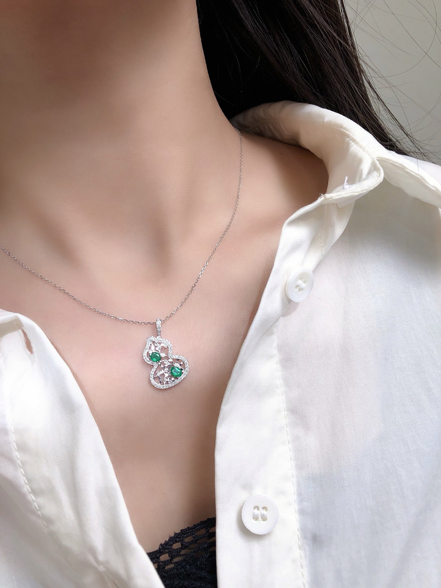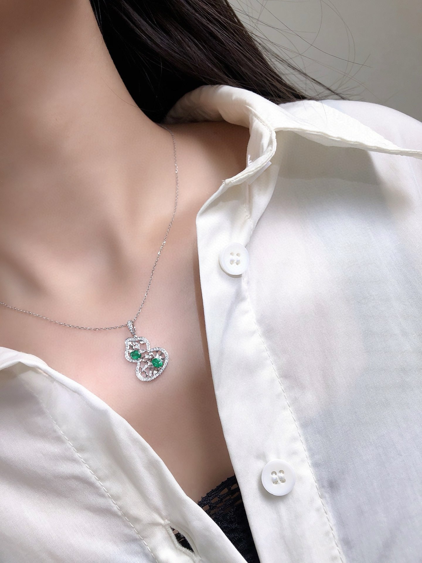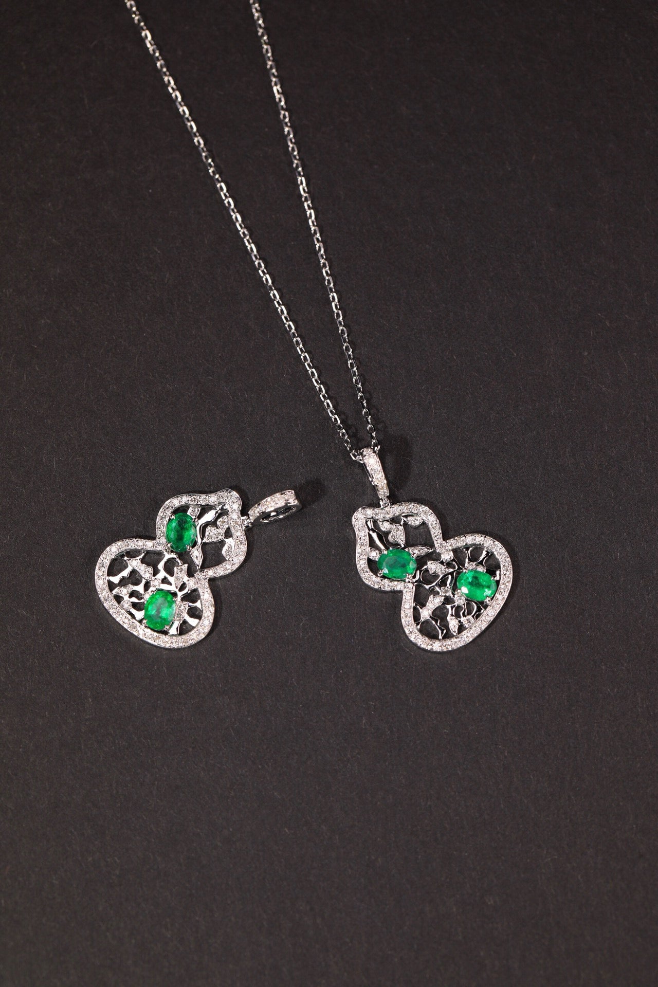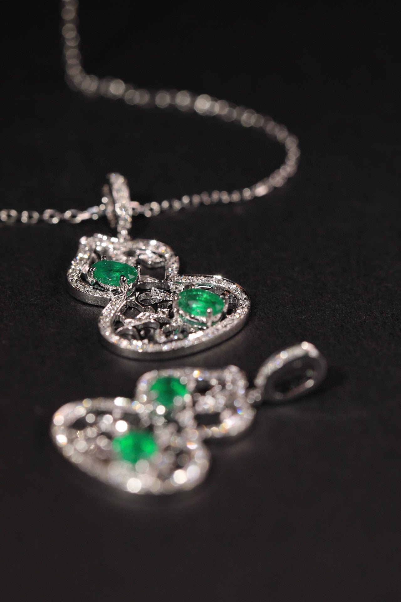 14K GOLD 0.33 CT NATURAL EMERALD & DIAMOND NECKLACE