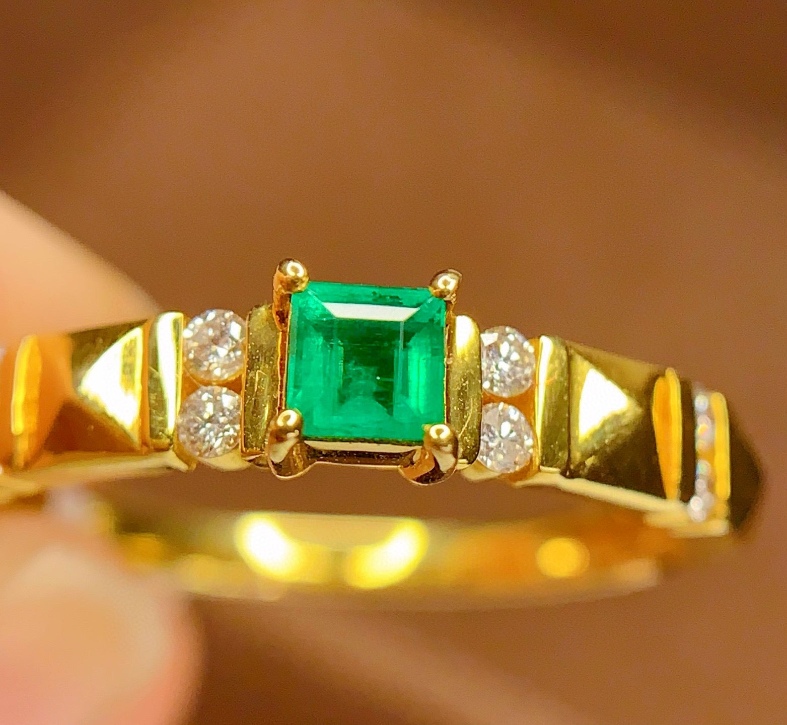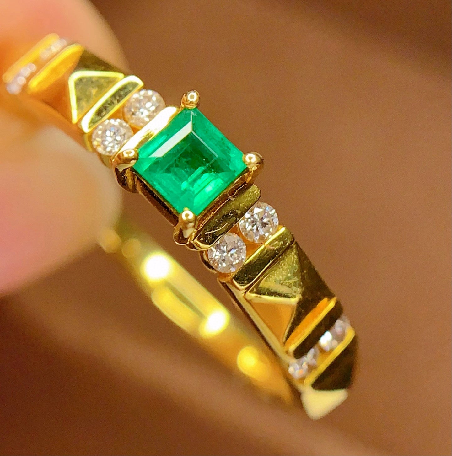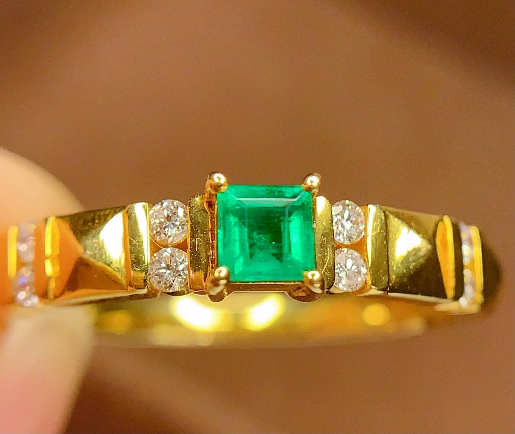 Ref:231025189 // Gold Content:14K Gold // Ring Size:7.25US // // Main Gemstone:Emerald // Shape:Square // Carat Weight:0.35ct // Color:Green // Treatment:Natural // // Adjacent Gemstone 2 : Diamond // Number of stones:8 // Shape:Round // Clarity Grade:VS-SI // Color:H // Treatment:Natural // Cut Grade:G //