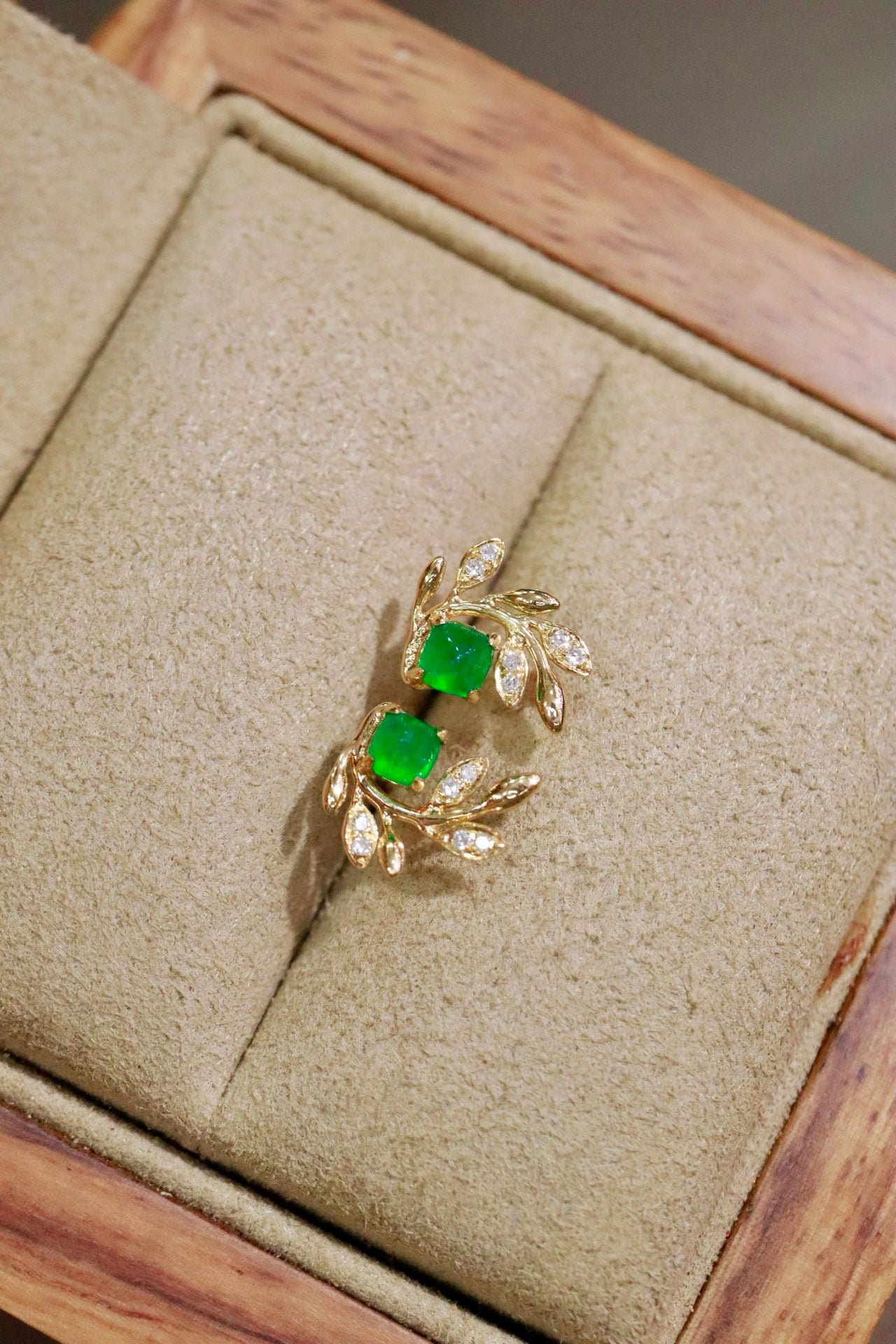 Ref:231019183 // Gold Content:14K Gold // Main Gemstone:Emerald // Shape:Suger-Loaf // Carat Weight:0.35ct // Color:Green // Treatment:Natural // // Adjacent Gemstone 2 : Diamond // Shape:Round // Carat Weight:0.05ct // Clarity Grade:VS-SI // Color:H // Treatment:Natural // Cut Grade:G //