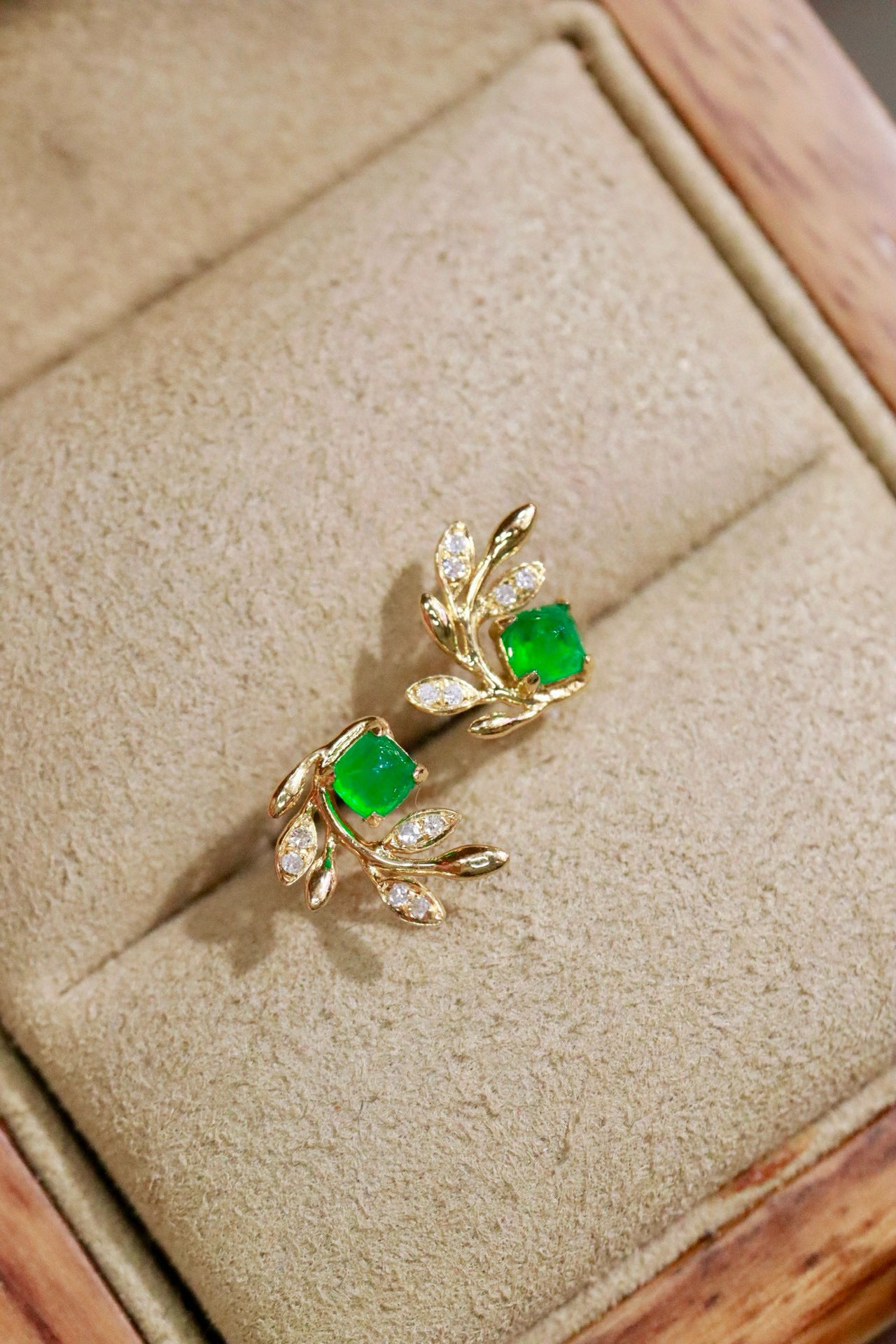 14K GOLD 0.40 CTW NATURAL EMERALD & DIAMOND EARRINGS