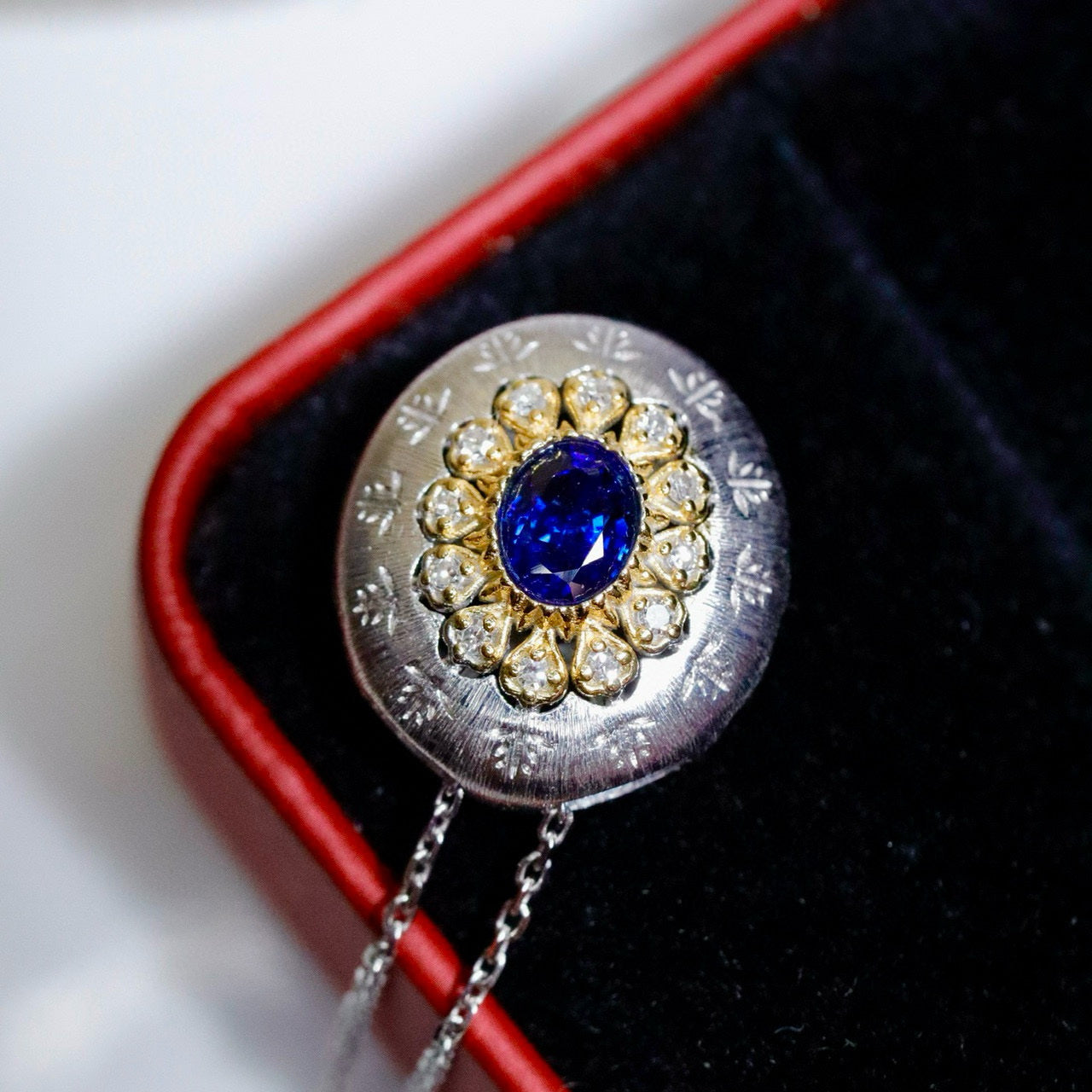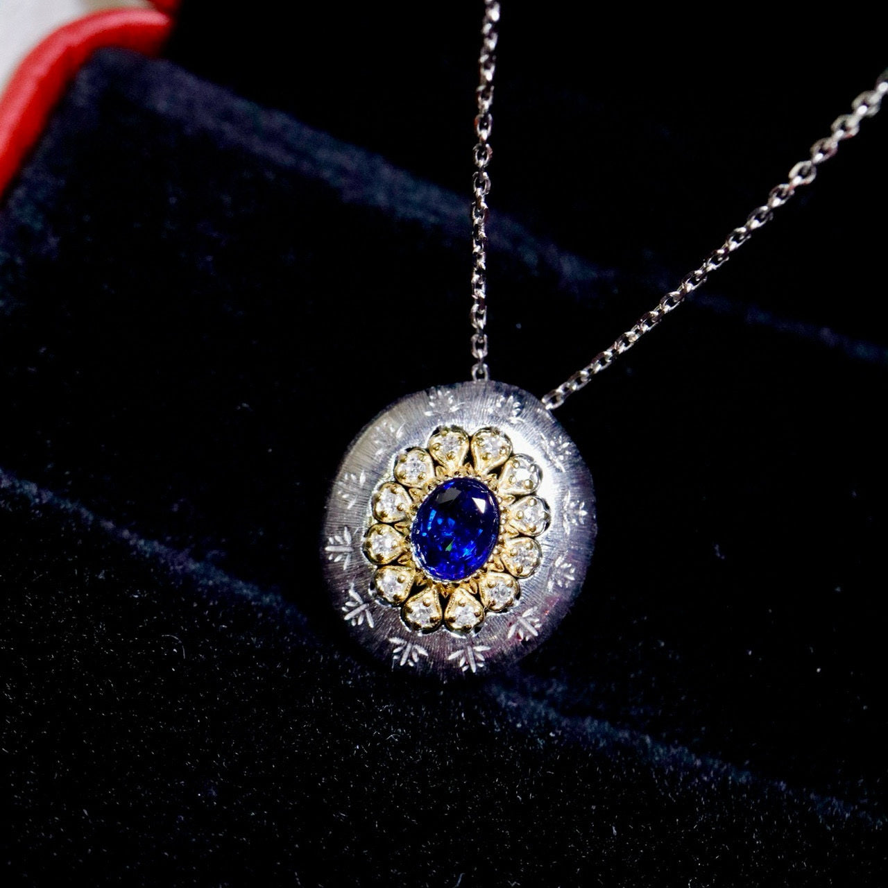 Ref:231019250 // Gold Content:14K Gold // Main Gemstone:Sapphire // Shape:Oval // Carat Weight:0.36ct // Color:Blue // Treatment:Natural // // Adjacent Gemstone 2 : Diamond // Shape:Round // Carat Weight:0.06ct // Clarity Grade:VS-SI // Color:H // Treatment:Natural // Cut Grade:G //