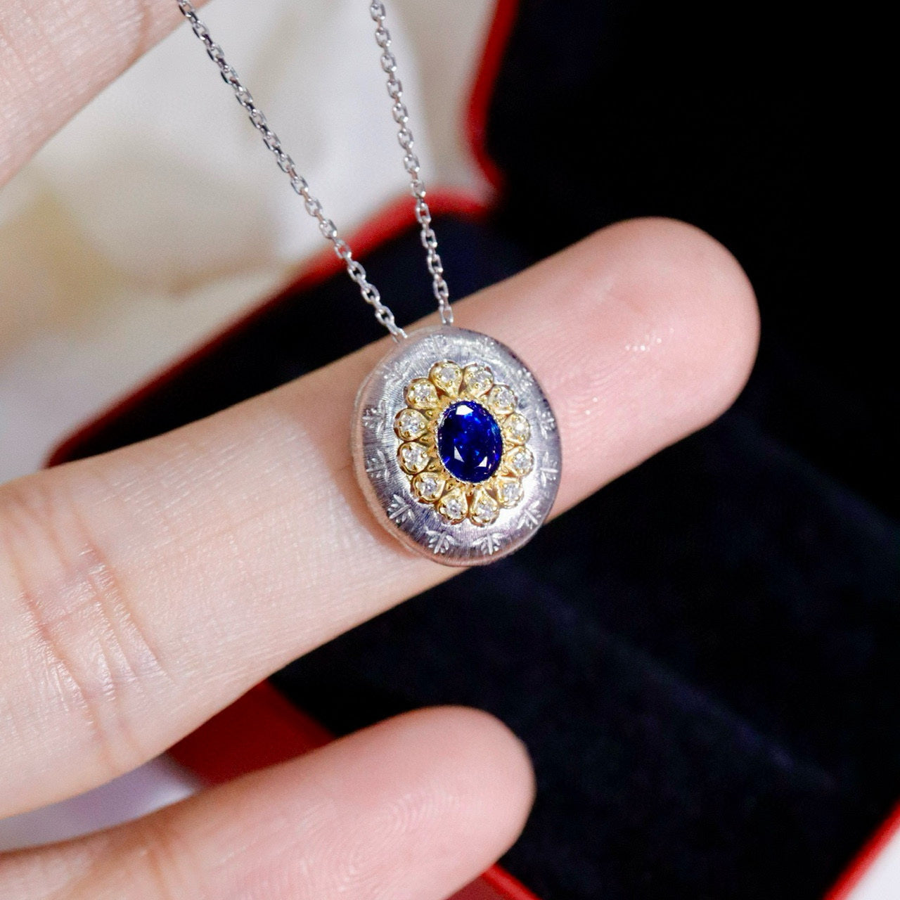 14K GOLD 0.42 CTW NATURAL SAPPHIRE & DIAMOND PENDANT( WITHOUT CHAIN )