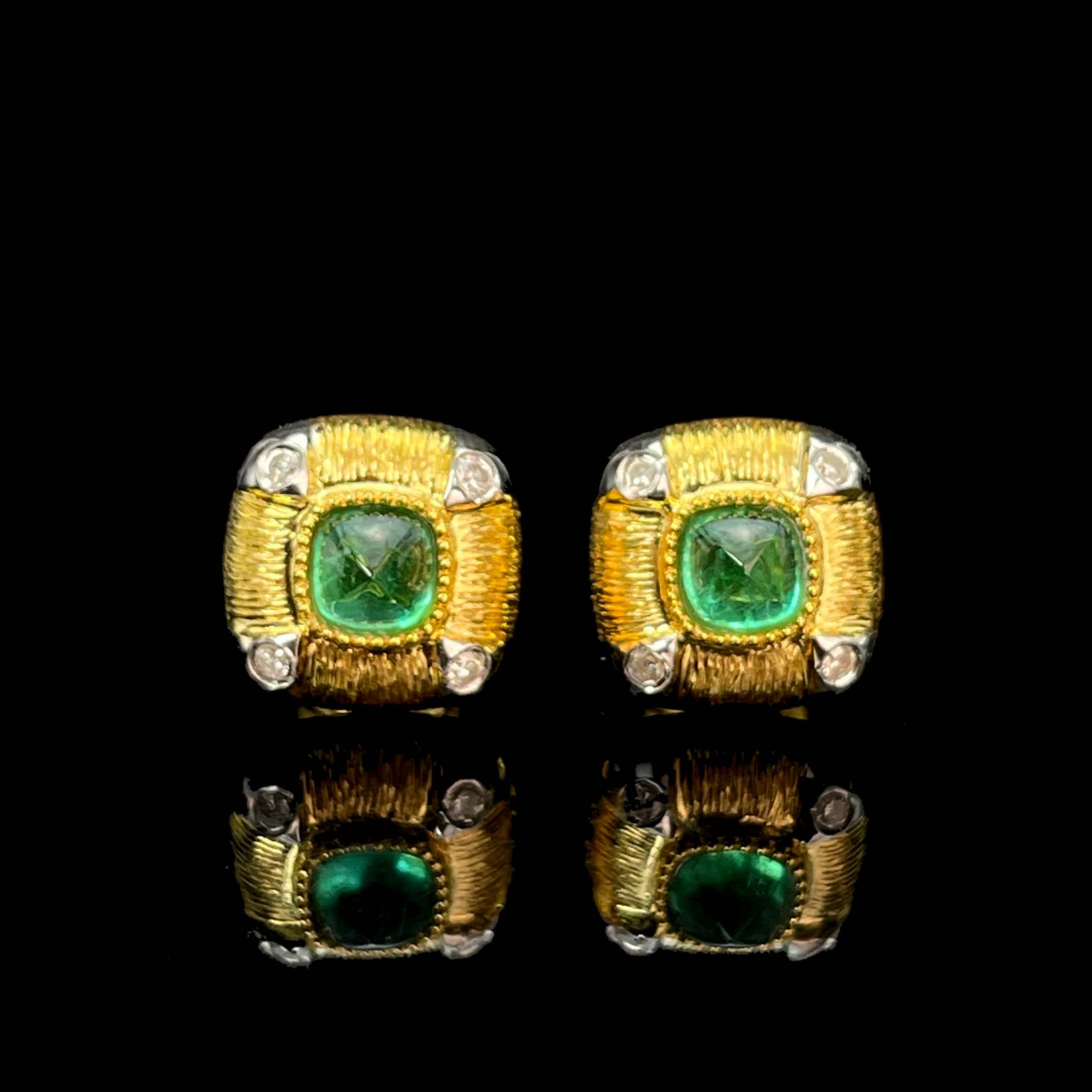 14K GOLD 0.43 CTW NATURAL EMERALD & DIAMOND EARRINGS