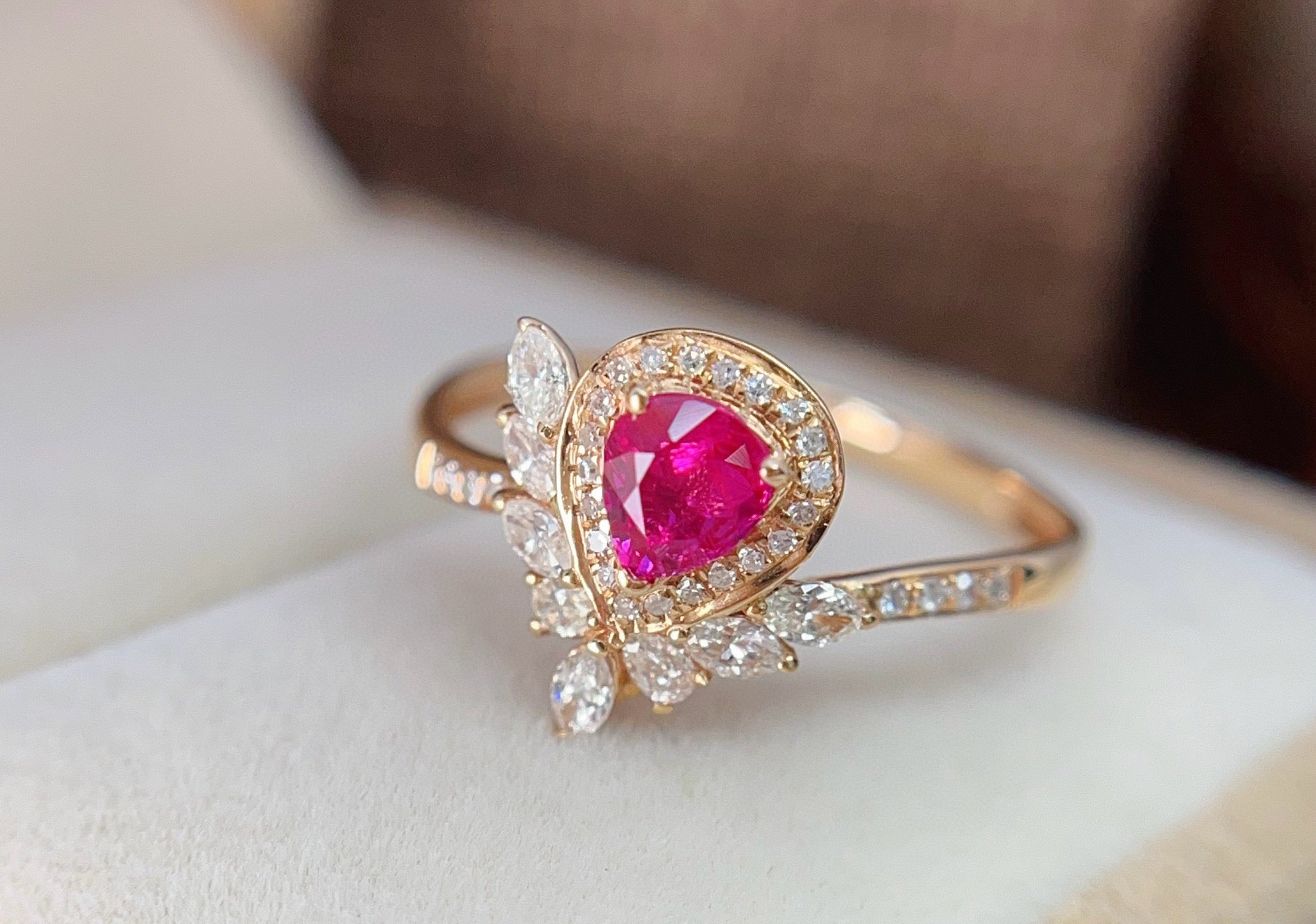 Ref:231027219 // Gold Content:14K Gold // Ring Size:7.25US // // Main Gemstone:Ruby // Shape:Pear // Carat Weight:0.45ct // Color:Red // Treatment:Natural // // Adjacent Gemstone 2 : Diamond // Number of stones:37 // Shape:Multiply // Clarity Grade:VS-SI // Color:H // Treatment:Natural //