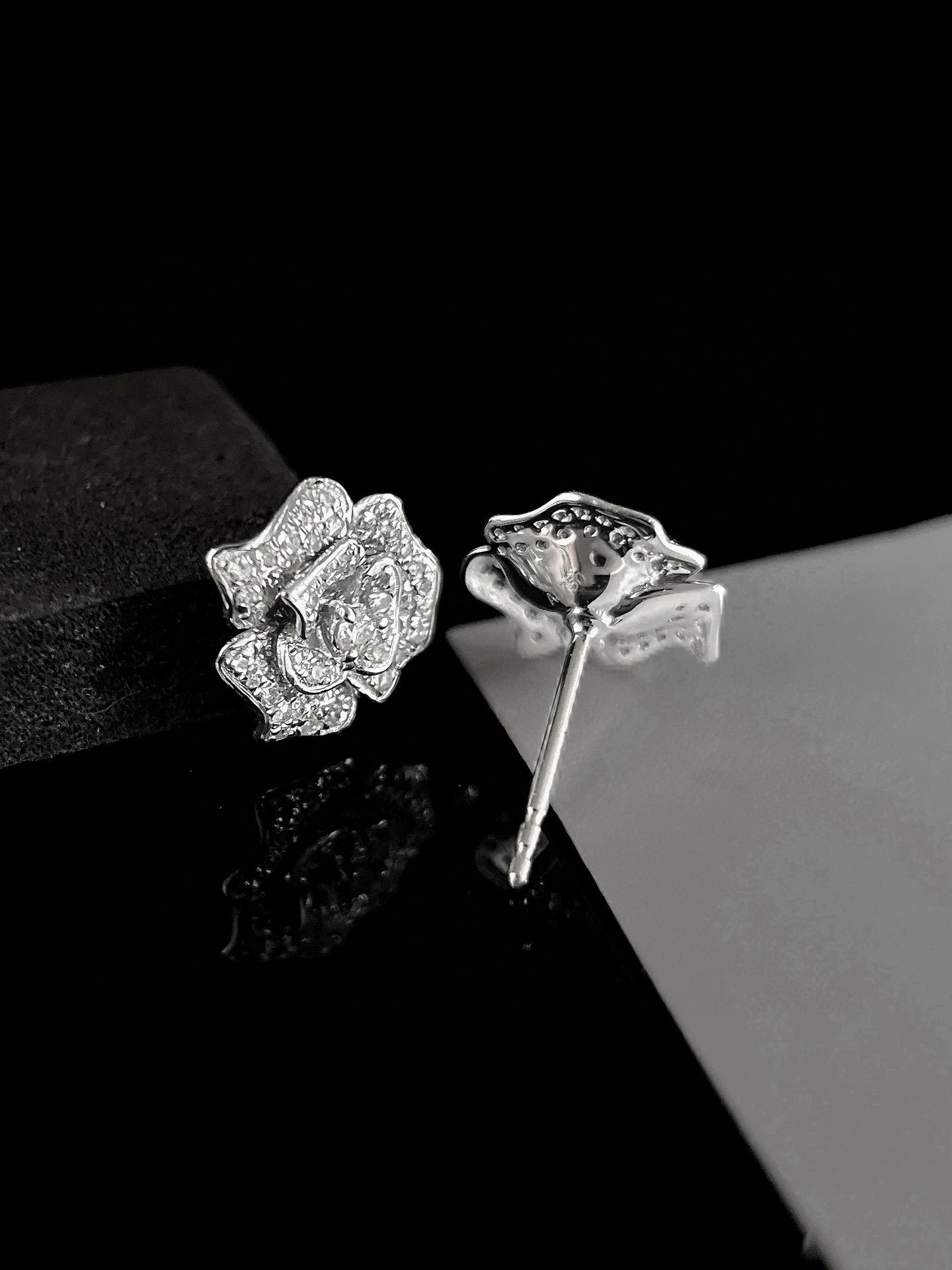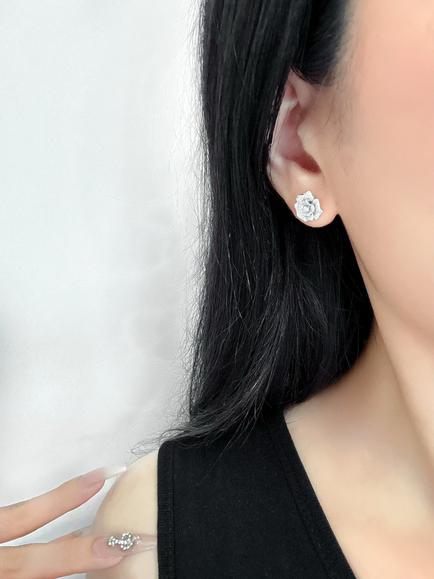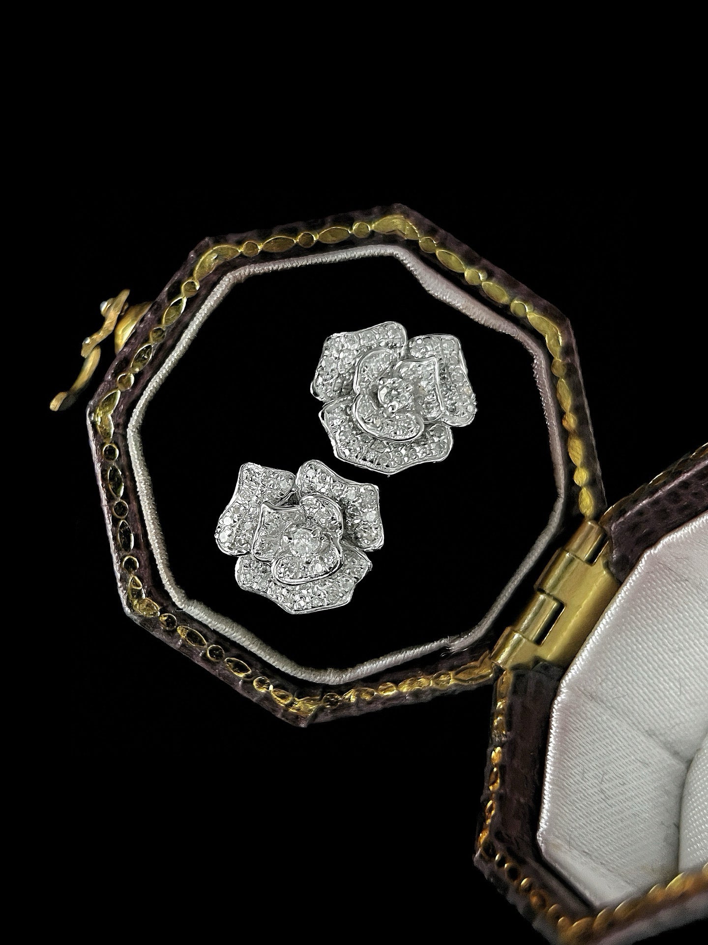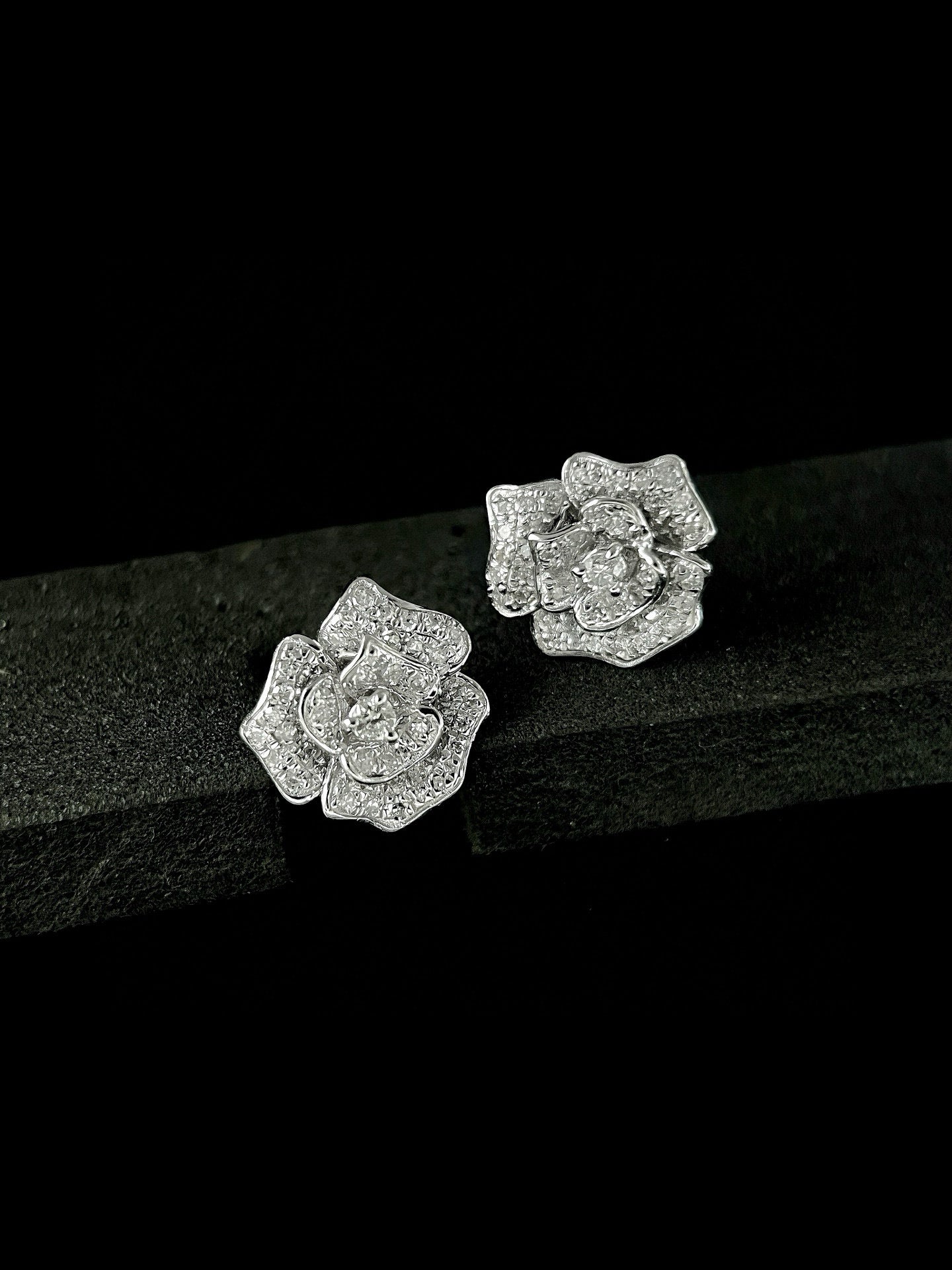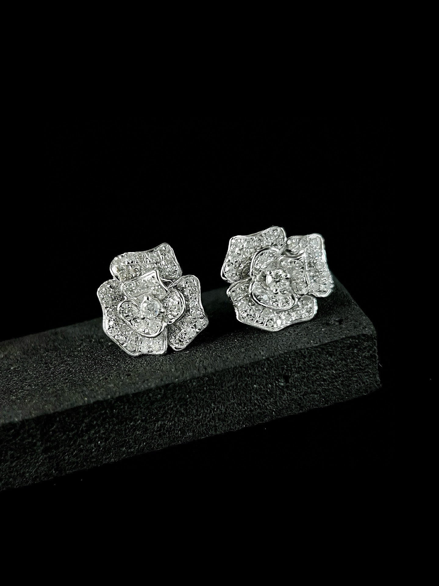 14K GOLD 0.46 CT NATURAL H DIAMOND & FLOWERS EARRINGS
