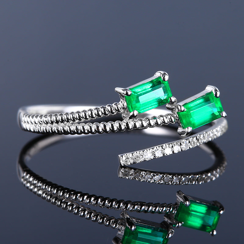 Ref:231021033 // Gold Content:14K Gold // Ring Size:7.25US // // Main Gemstone:Emerald // Shape:Octagonal // Carat Weight:0.43ct // Color:Vivid Green // Treatment:Natural // // Adjacent Gemstone 2 : Diamond // Number of stones:20 // Shape:Round // Carat Weight:0.06ct // Clarity Grade:VS-SI // Color:H // Treatment:Natural // Cut Grade:G //