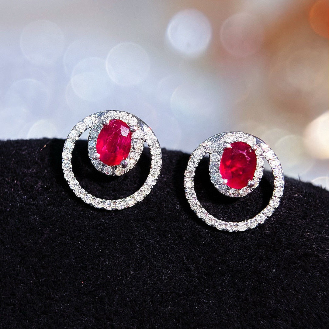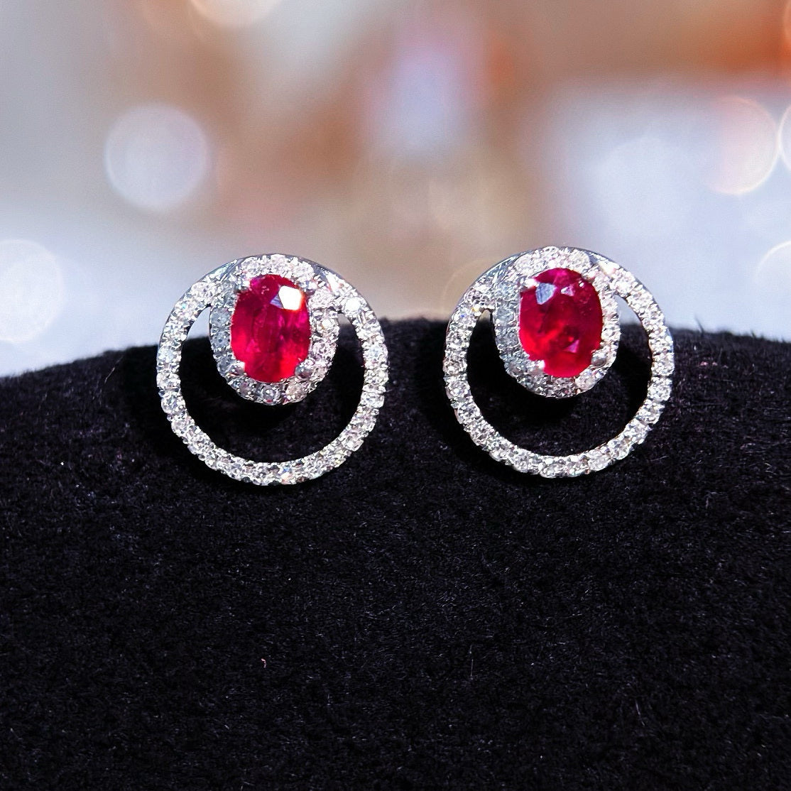 14K GOLD 0.5 CT NATURAL RUBY & DIAMOND EARRINGS