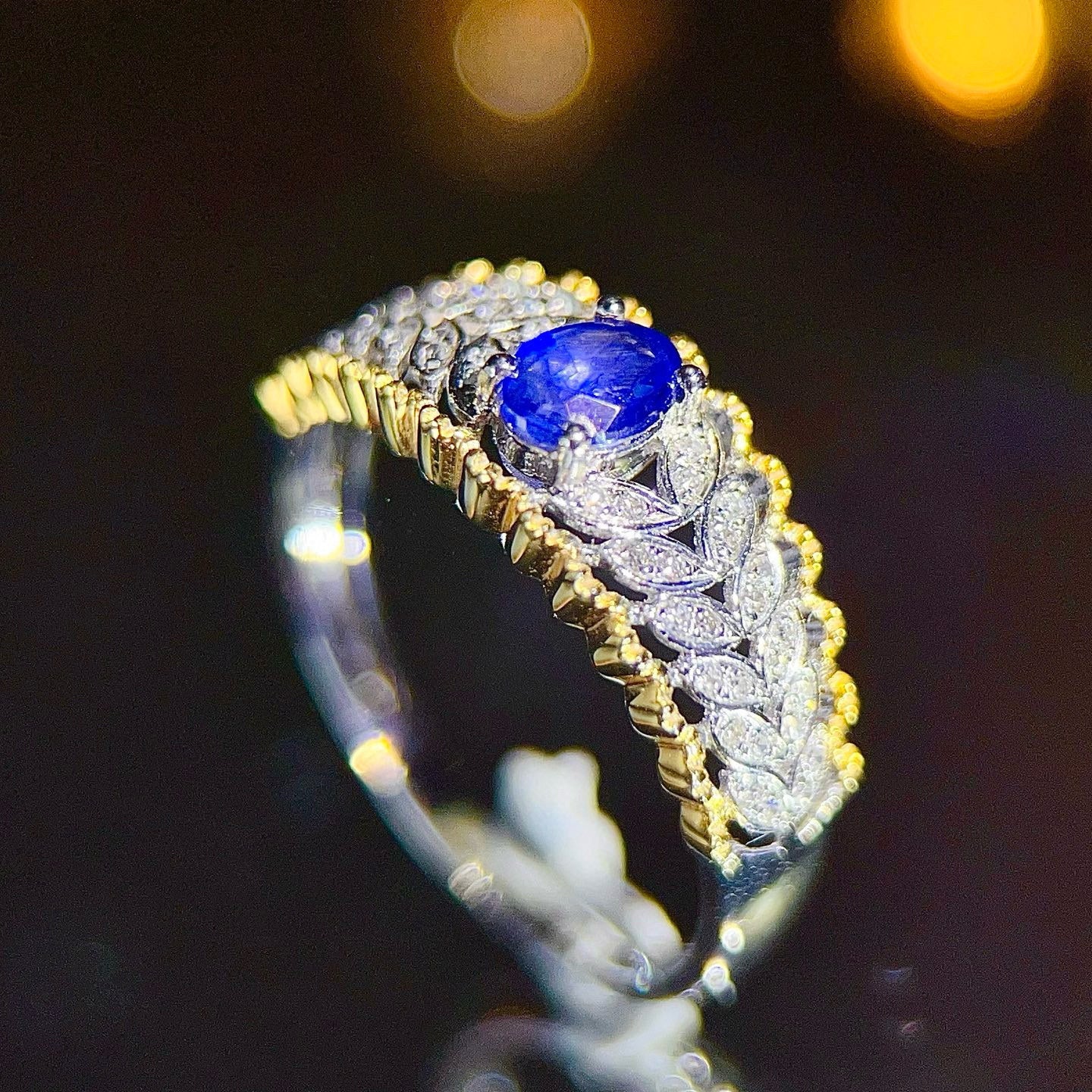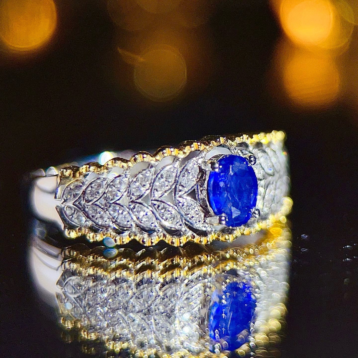 Ref:231023078 // Gold Content:14K Gold // Ring Size:7.25US // // Main Gemstone:Sapphire // Shape:Oval // Carat Weight:0.5ct // Color:Blue // Treatment:Natural // // Adjacent Gemstone 2 : Diamond // Number of stones:48 // Shape:Round // Clarity Grade:VS-SI // Color:H // Treatment:Natural // Cut Grade:G //
