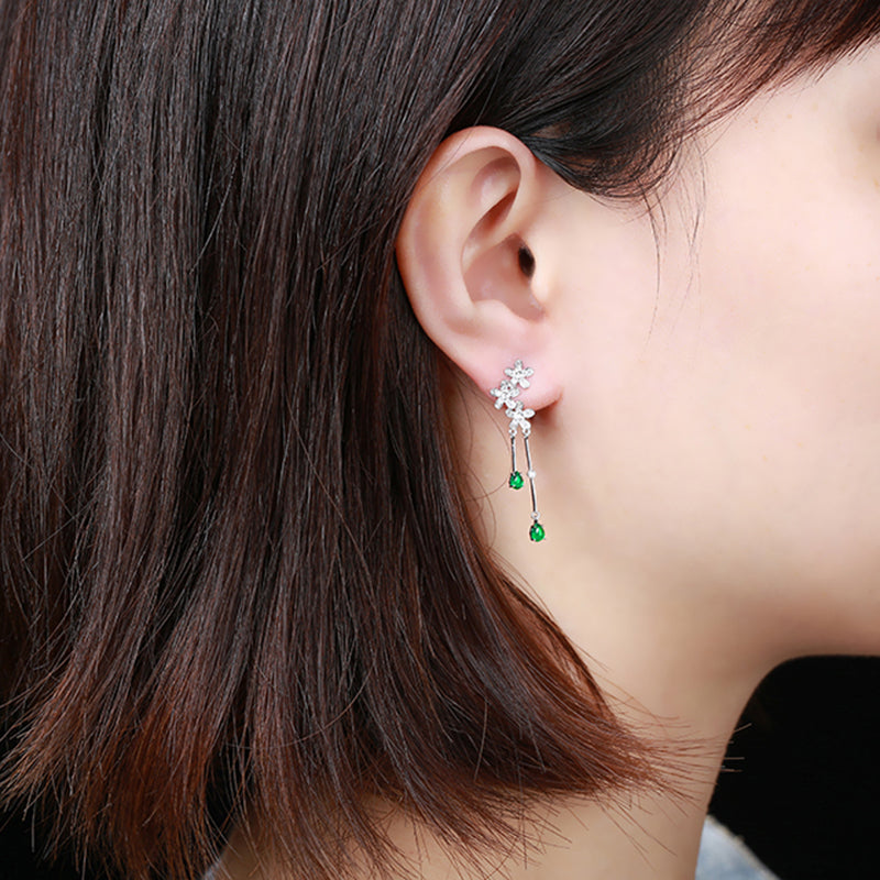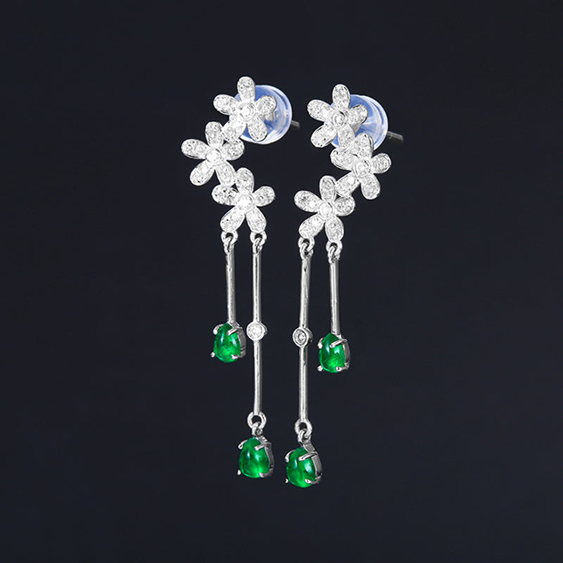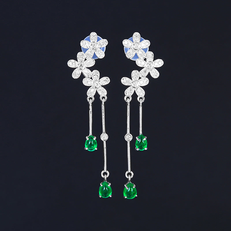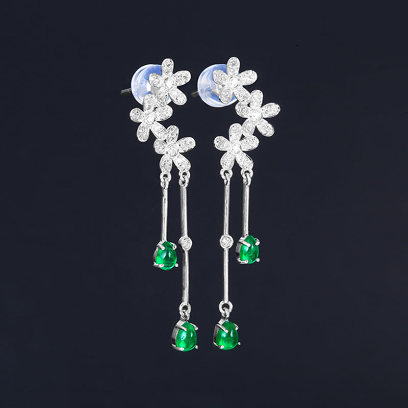 Ref:231021004 // Gold Content:14K Gold // Main Gemstone:Emerald // Shape:Pear // Carat Weight:0.5ct // Color:Vivid Green // Treatment:Natural // // Adjacent Gemstone 2 : Diamond // Shape:Round // Clarity Grade:VS-SI // Color:H // Treatment:Natural // Cut Grade:G //