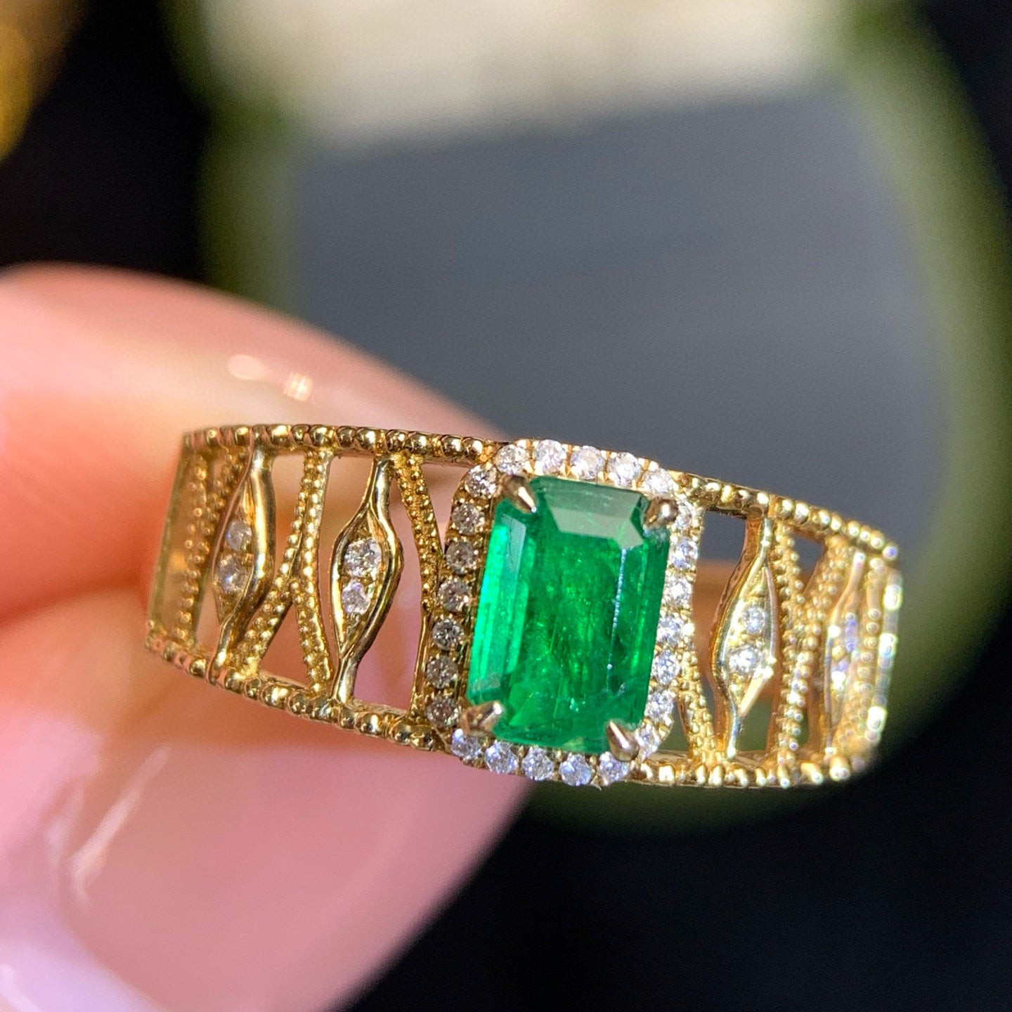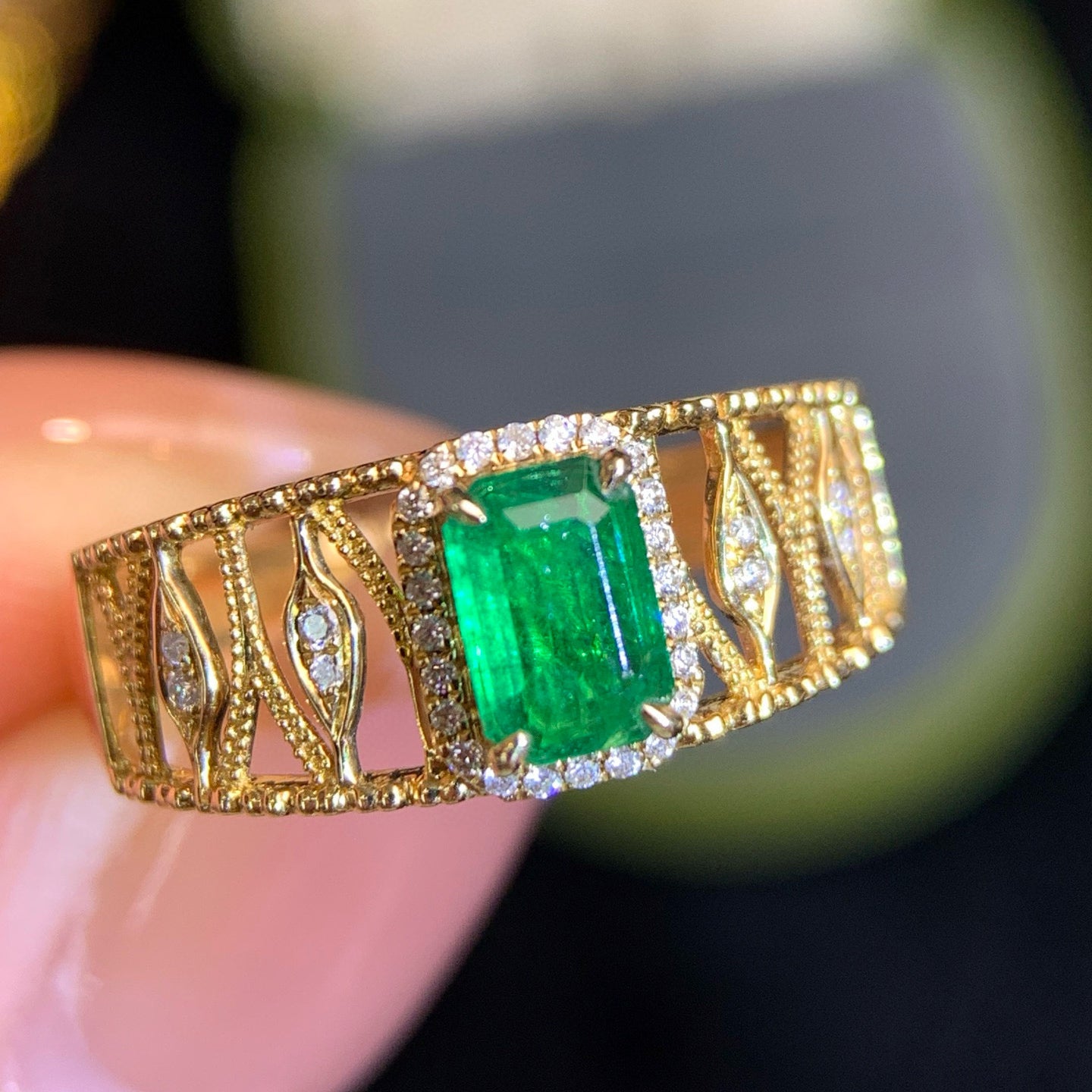 Ref:231023232 // Gold Content:14K Gold // Ring Size:7.25US // // Main Gemstone:Emerald // Shape:Octagonal // Carat Weight:0.4ct // Color:Green // Treatment:Natural // // Adjacent Gemstone 2 : Diamond // Shape:Round // Carat Weight:0.1ct // Clarity Grade:VS-SI // Color:H // Treatment:Natural // Cut Grade:G //