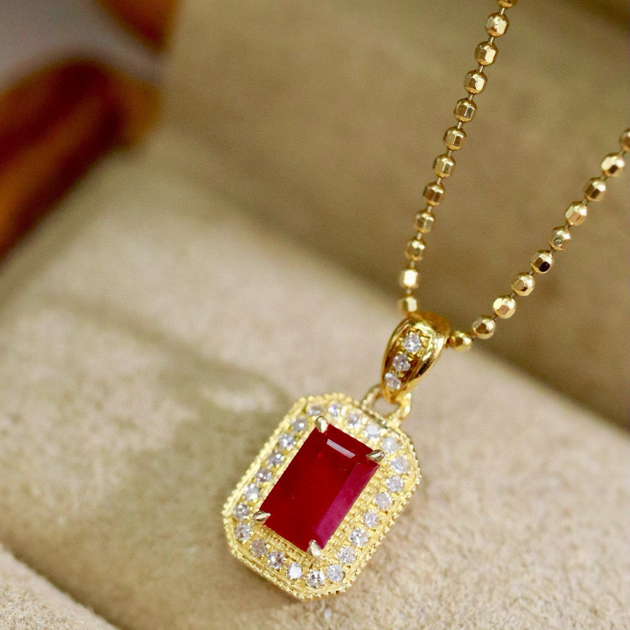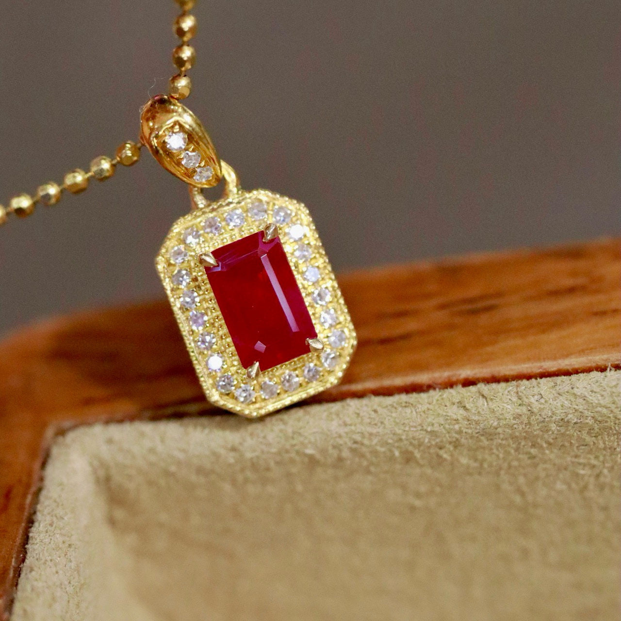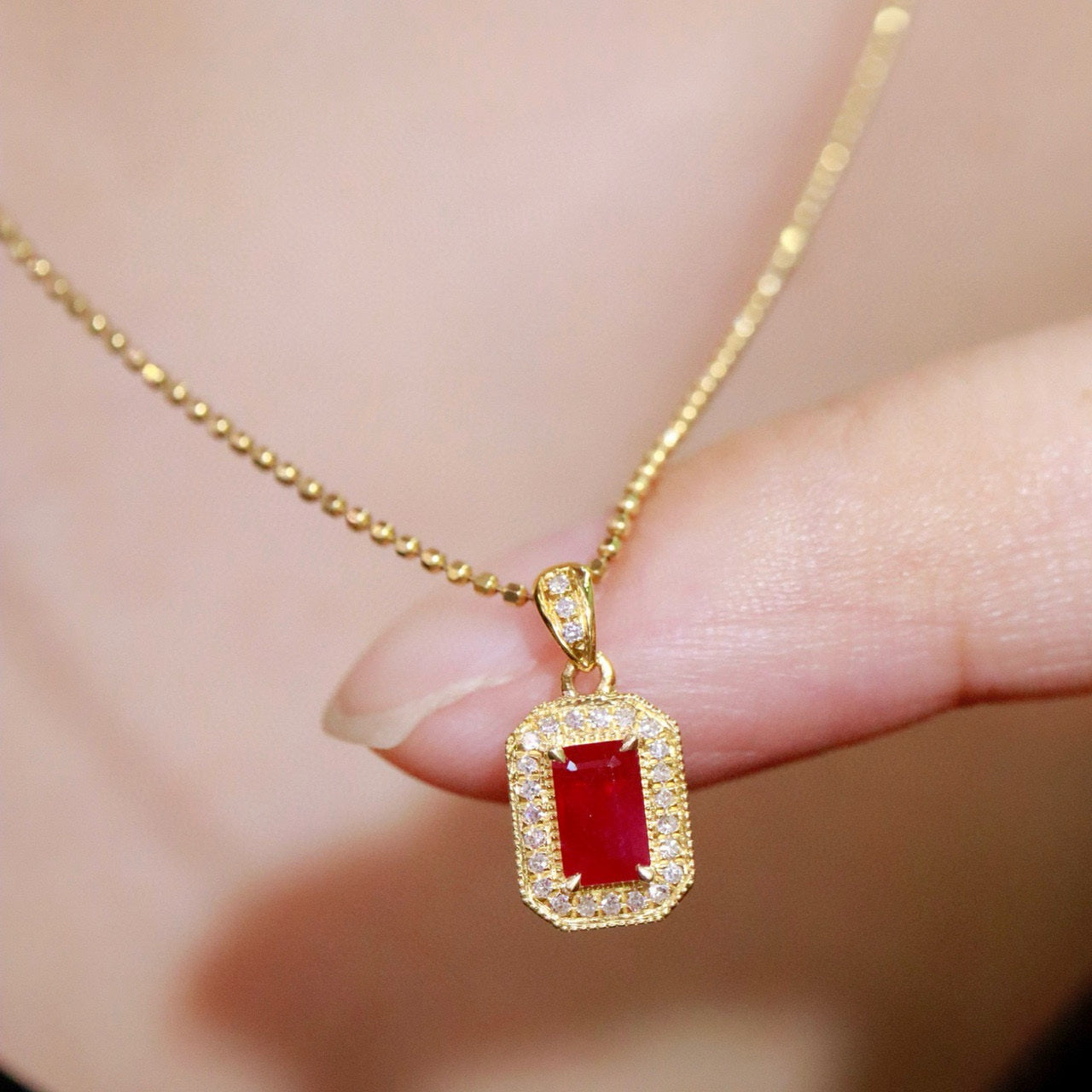 Ref:231019252 // Gold Content:14K Gold // Main Gemstone:Ruby // Shape:Octagonal // Carat Weight:0.43ct // Color:Red // Treatment:Natural // // Adjacent Gemstone 2 : Diamond // Shape:Round // Carat Weight:0.08ct // Clarity Grade:VS-SI // Color:H // Treatment:Natural // Cut Grade:G //