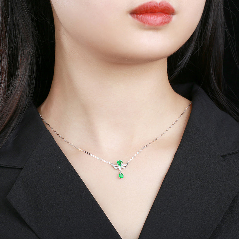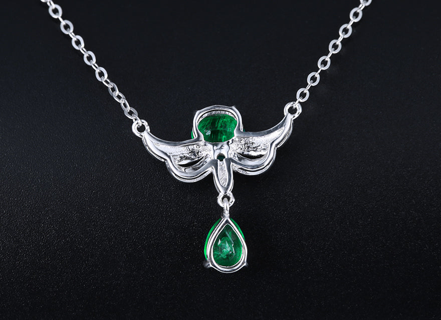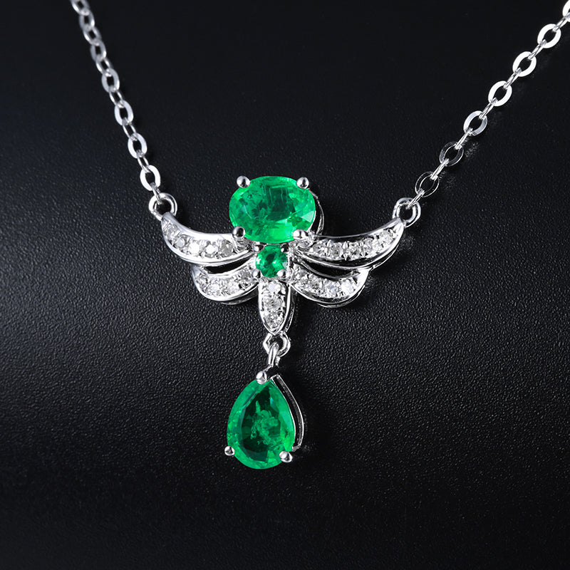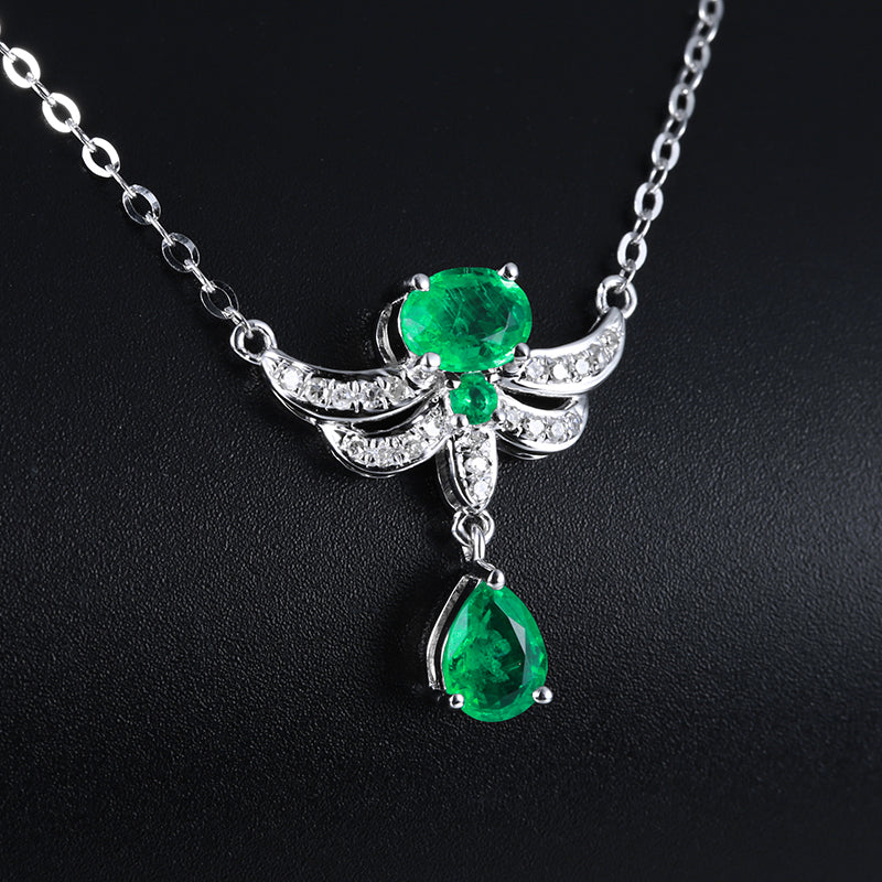 14K GOLD 0.52 CTW VIVID GREEN NATURAL EMERALD & DIAMOND NECKLACE