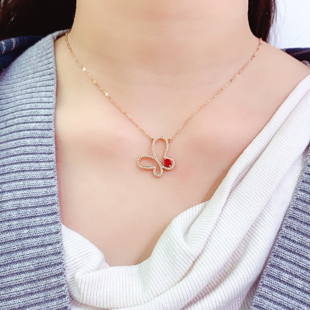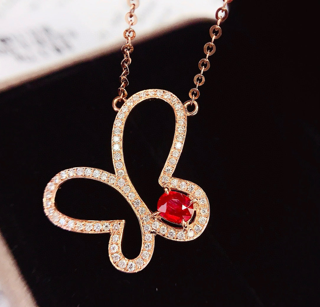 14K GOLD 0.55 CT NATURAL RUBY & DIAMOND NECKLACE