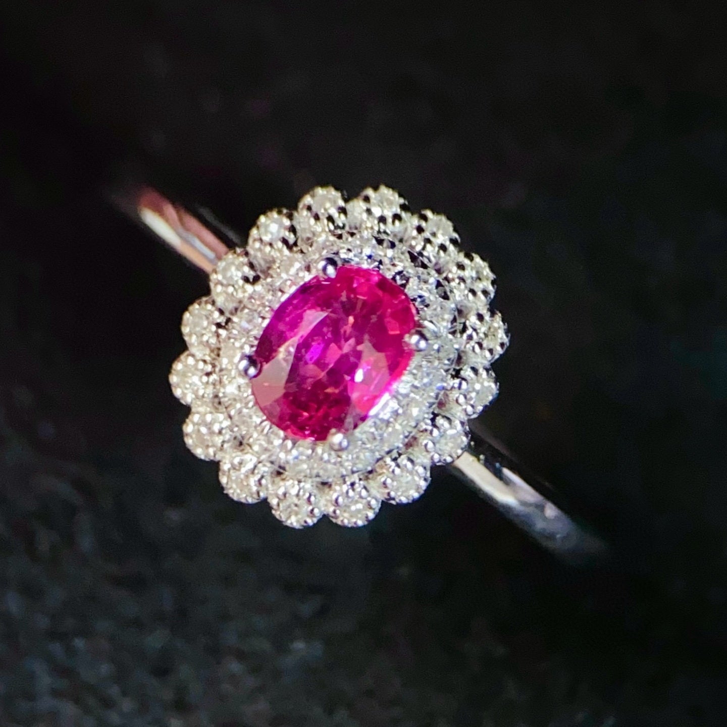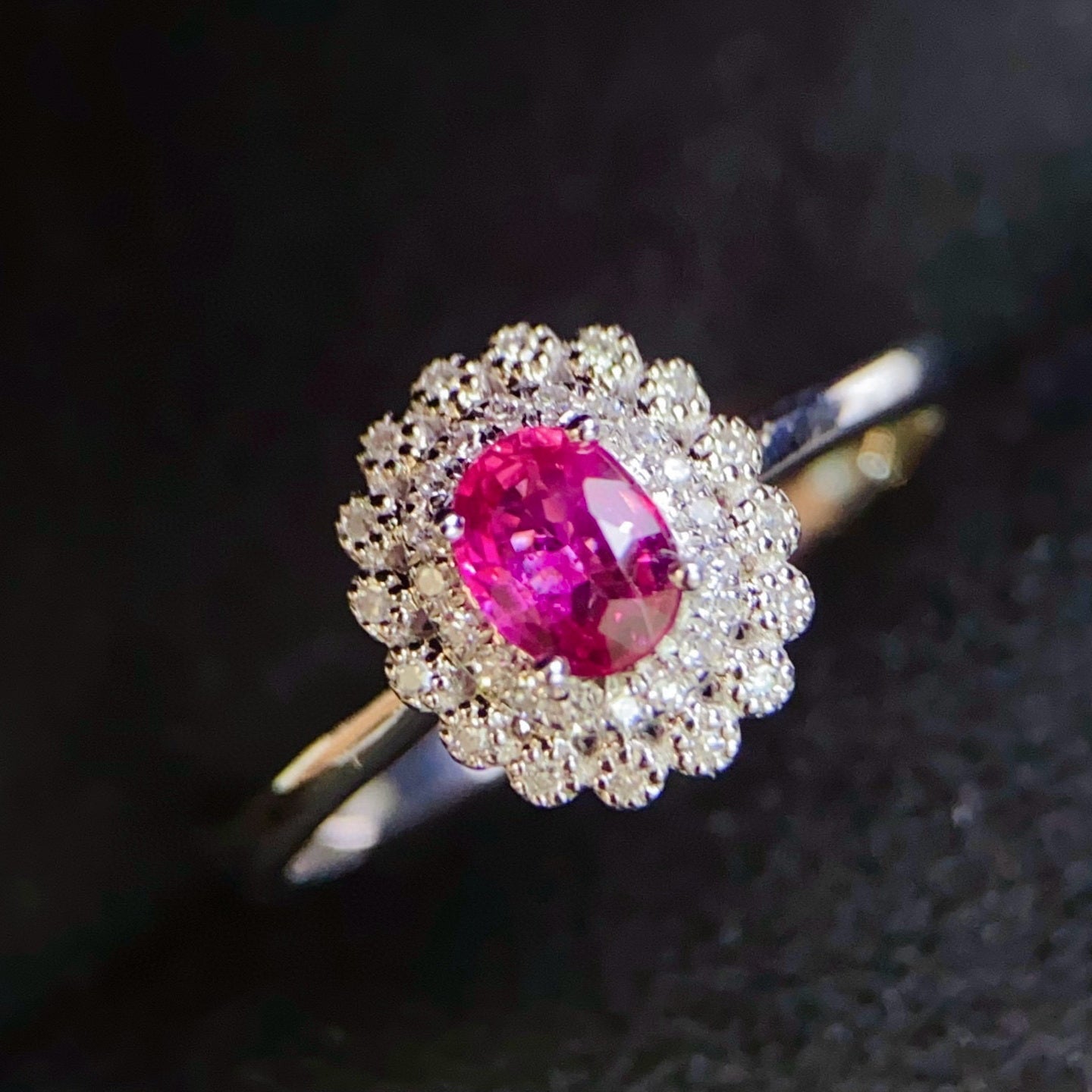 Ref:231021081 // Gold Content:14K Gold // Ring Size:7.25US // // Main Gemstone:Ruby // Shape:Oval // Carat Weight:0.55ct // Color:Red // Treatment:Natural // // Adjacent Gemstone 2 : Diamond // Number of stones:35 // Shape:Round // Clarity Grade:VS-SI // Color:H // Treatment:Natural // Cut Grade:G //