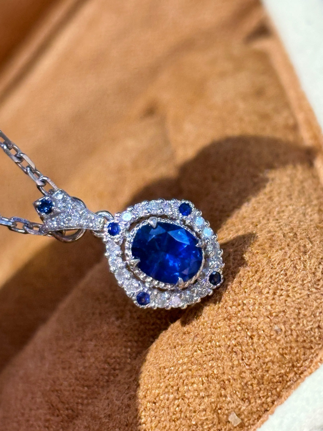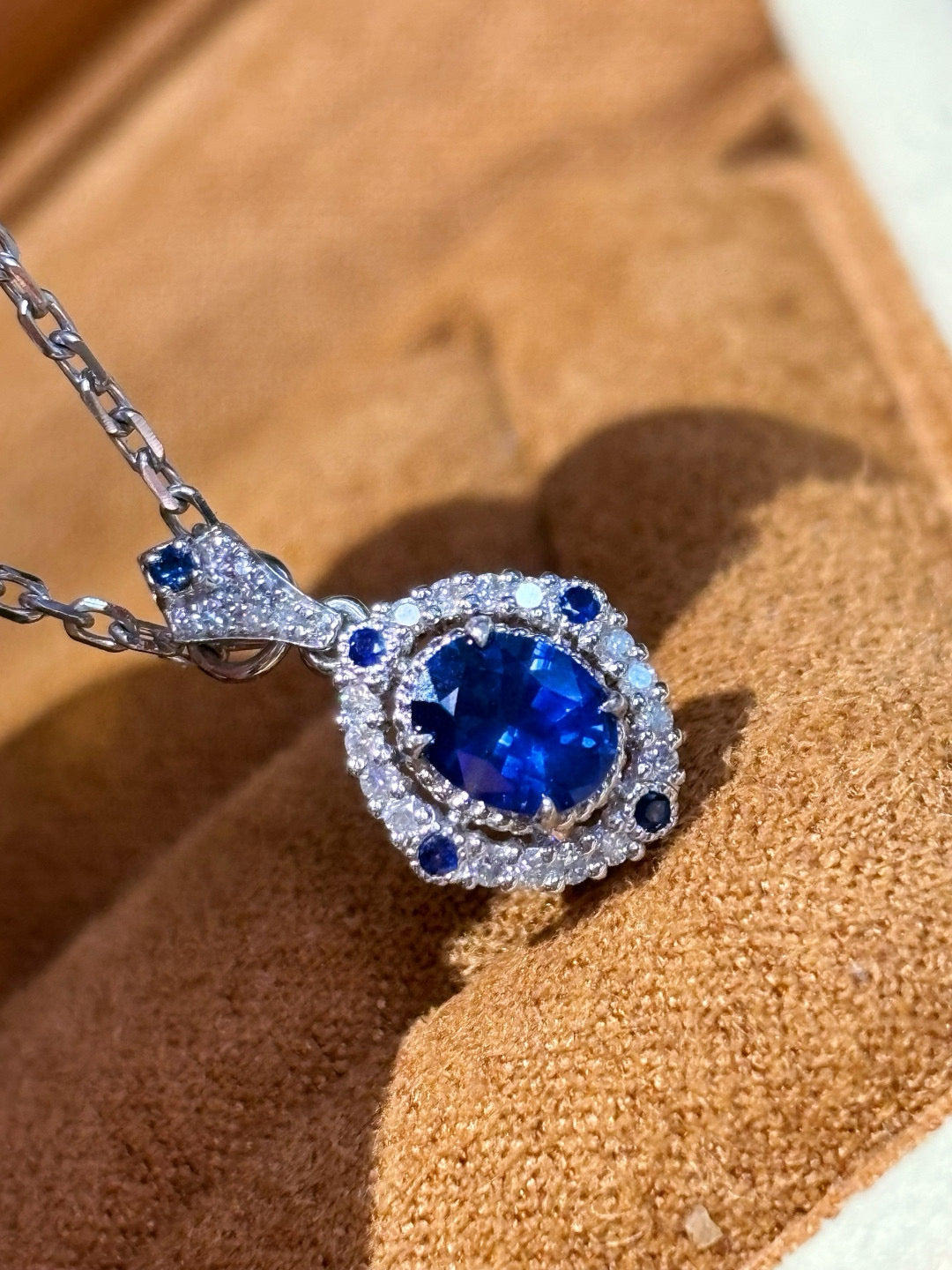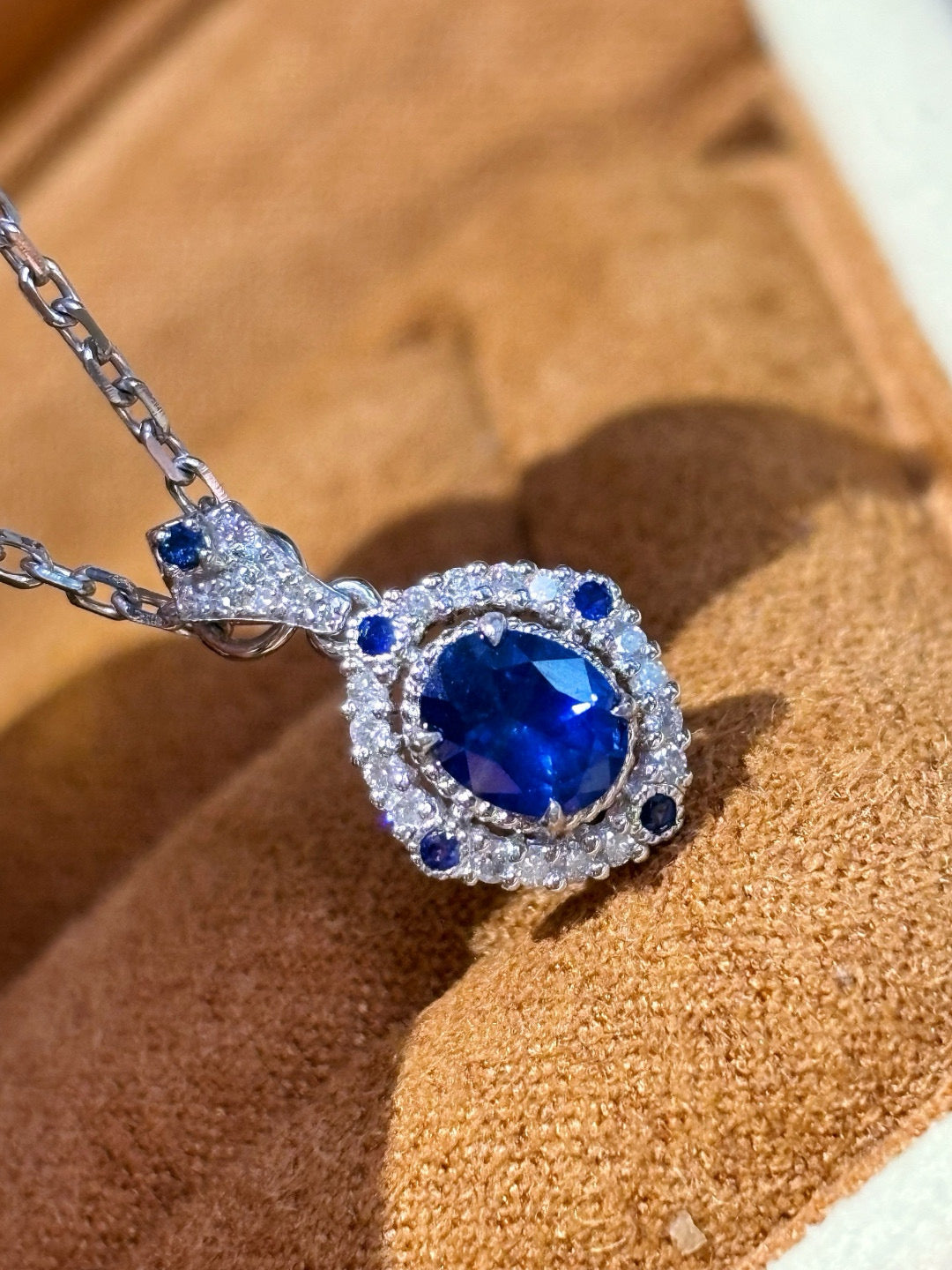 Ref:231027135 // Gold Content:14K Gold // Main Gemstone:Sapphire // Shape:Oval // Carat Weight:0.55ct // Color:Royal blue // Treatment:Natural // // Adjacent Gemstone 2 : Diamond // Shape:Round // Clarity Grade:VS-SI // Color:H // Treatment:Natural // Cut Grade:G //