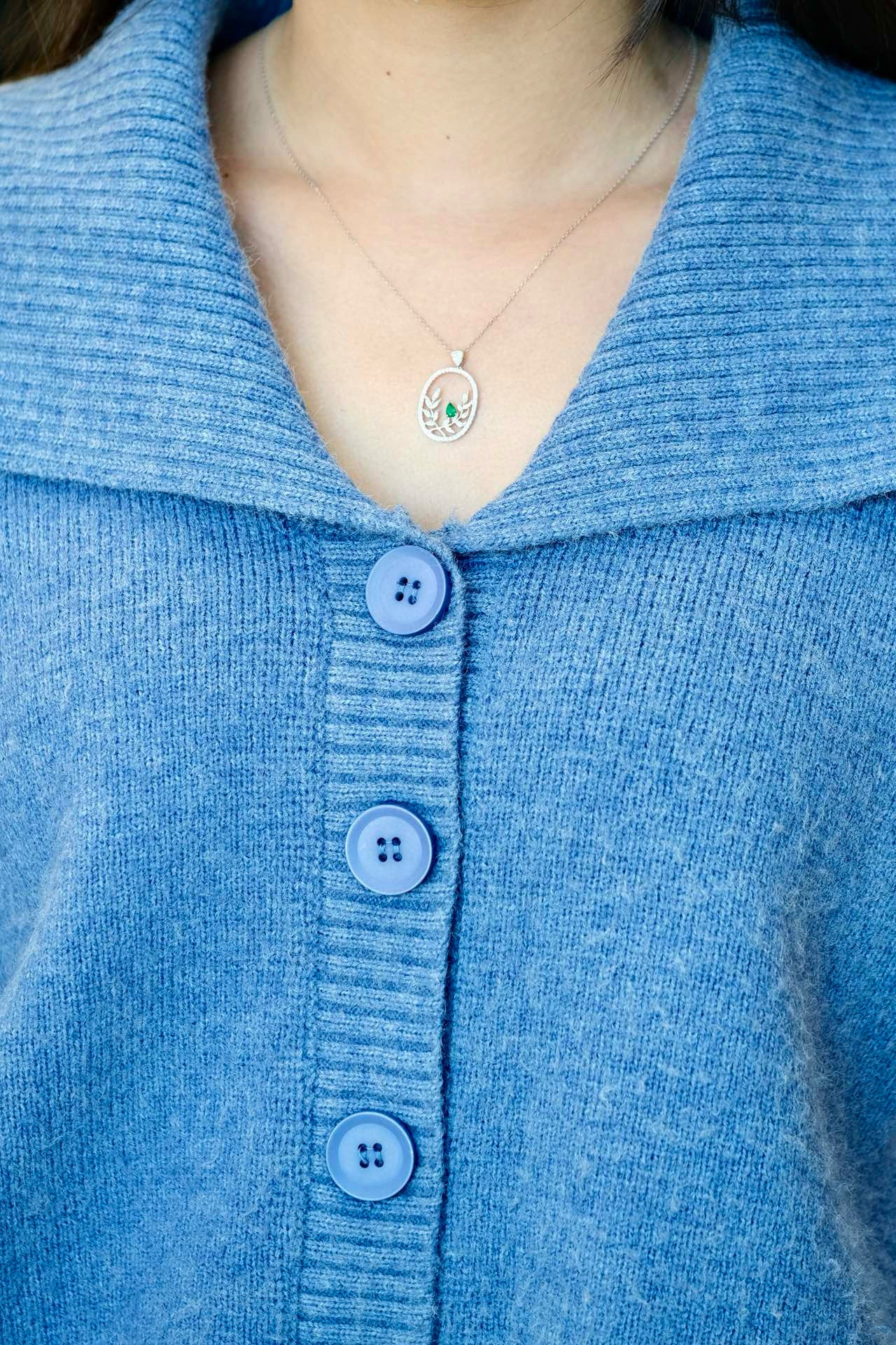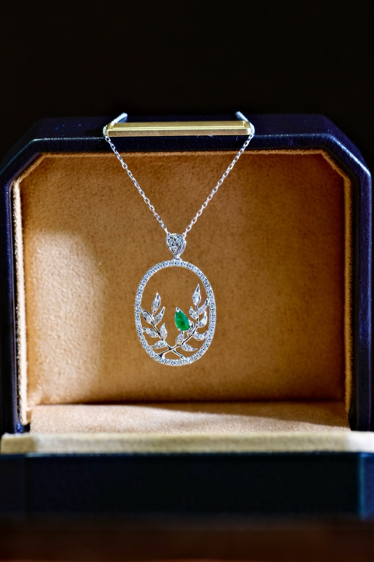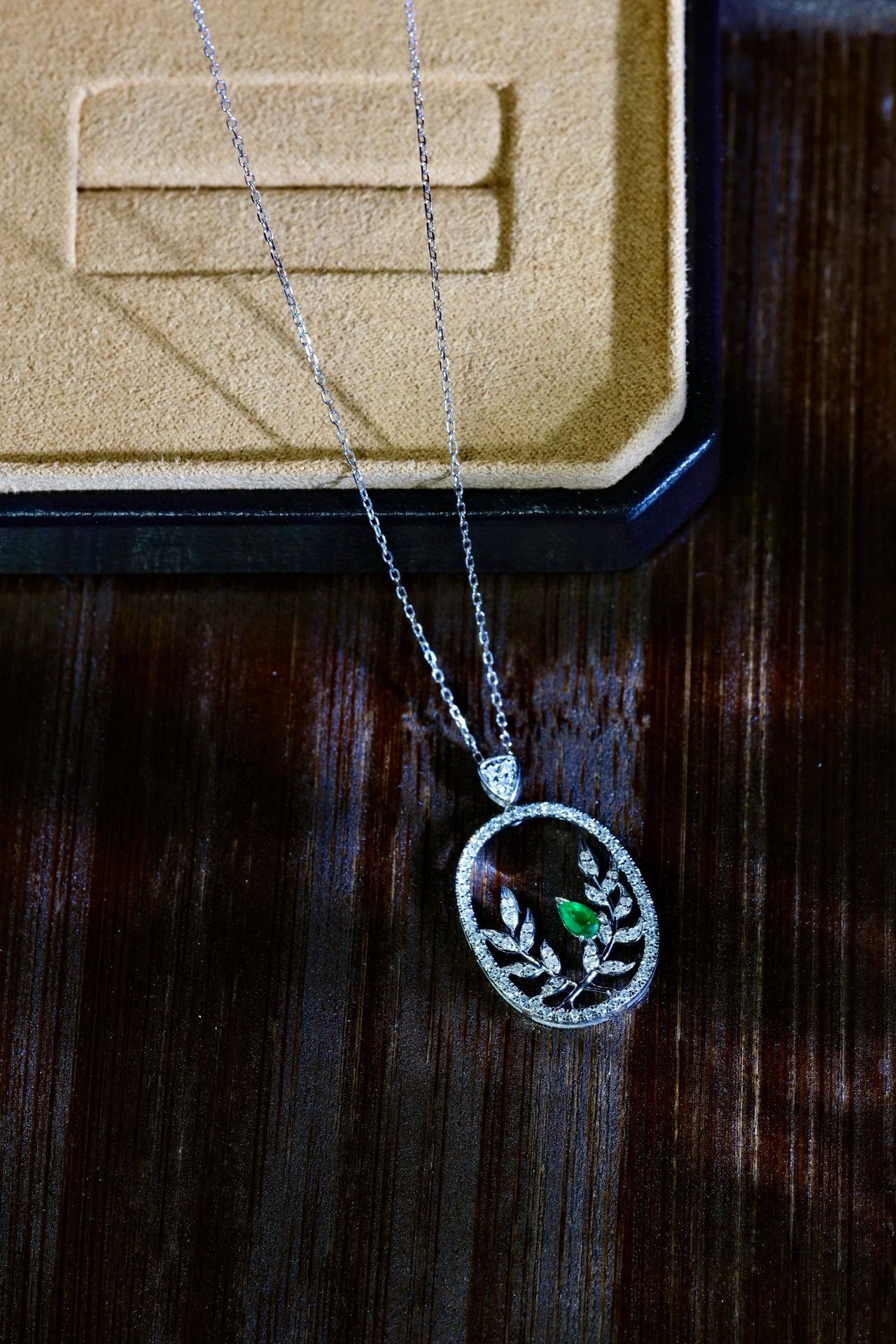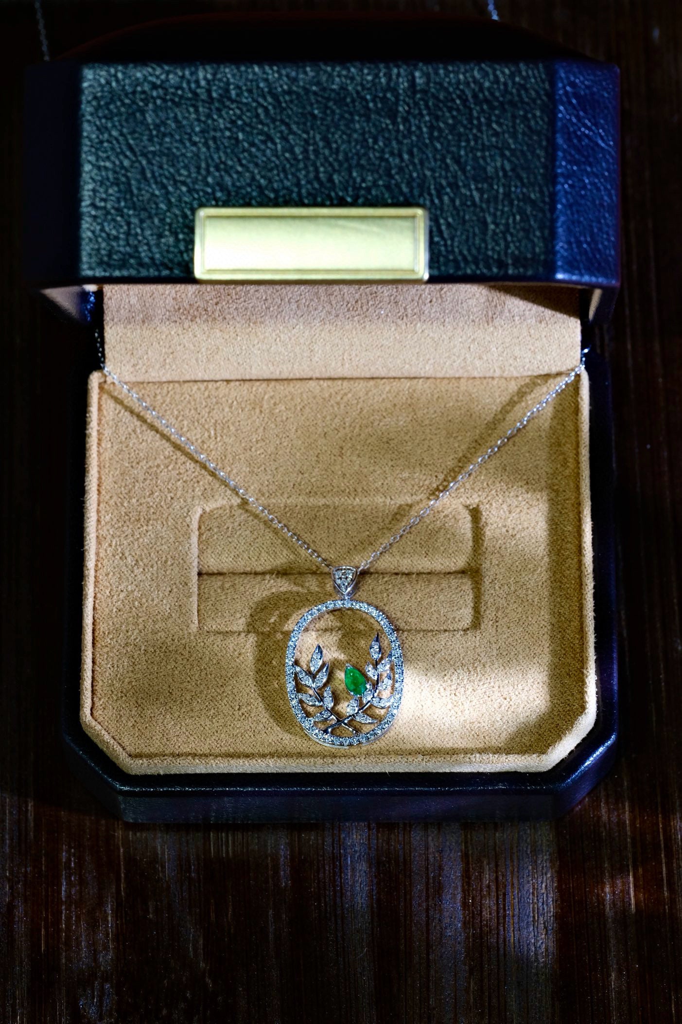 Ref:231025061 // Gold Content:14K Gold // Main Gemstone:Emerald // Shape:Pear // Carat Weight:0.16ct // Color:Vivid Green // Treatment:Natural // // Adjacent Gemstone 2 : Diamond // Shape:Round // Carat Weight:0.4ct // Clarity Grade:VS-SI // Color:H // Treatment:Natural // Cut Grade:G //