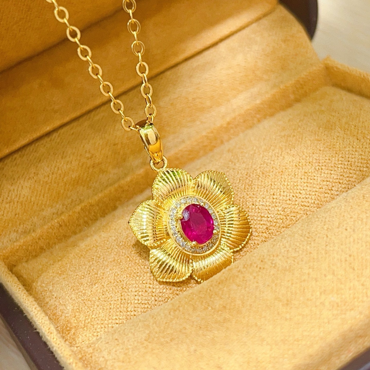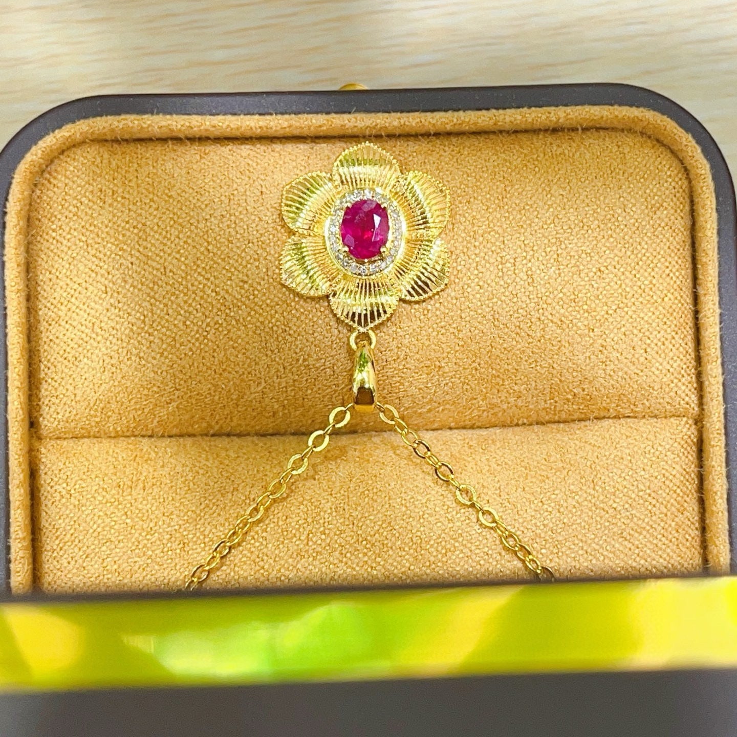 Ref:231021230 // Gold Content:14K Gold // Main Gemstone:Ruby // Shape:Oval // Carat Weight:0.58ct // Color:Red // Treatment:Natural // // Adjacent Gemstone 2 : Diamond // Number of stones:24 // Shape:Round // Clarity Grade:VS-SI // Color:H // Treatment:Natural // Cut Grade:G //