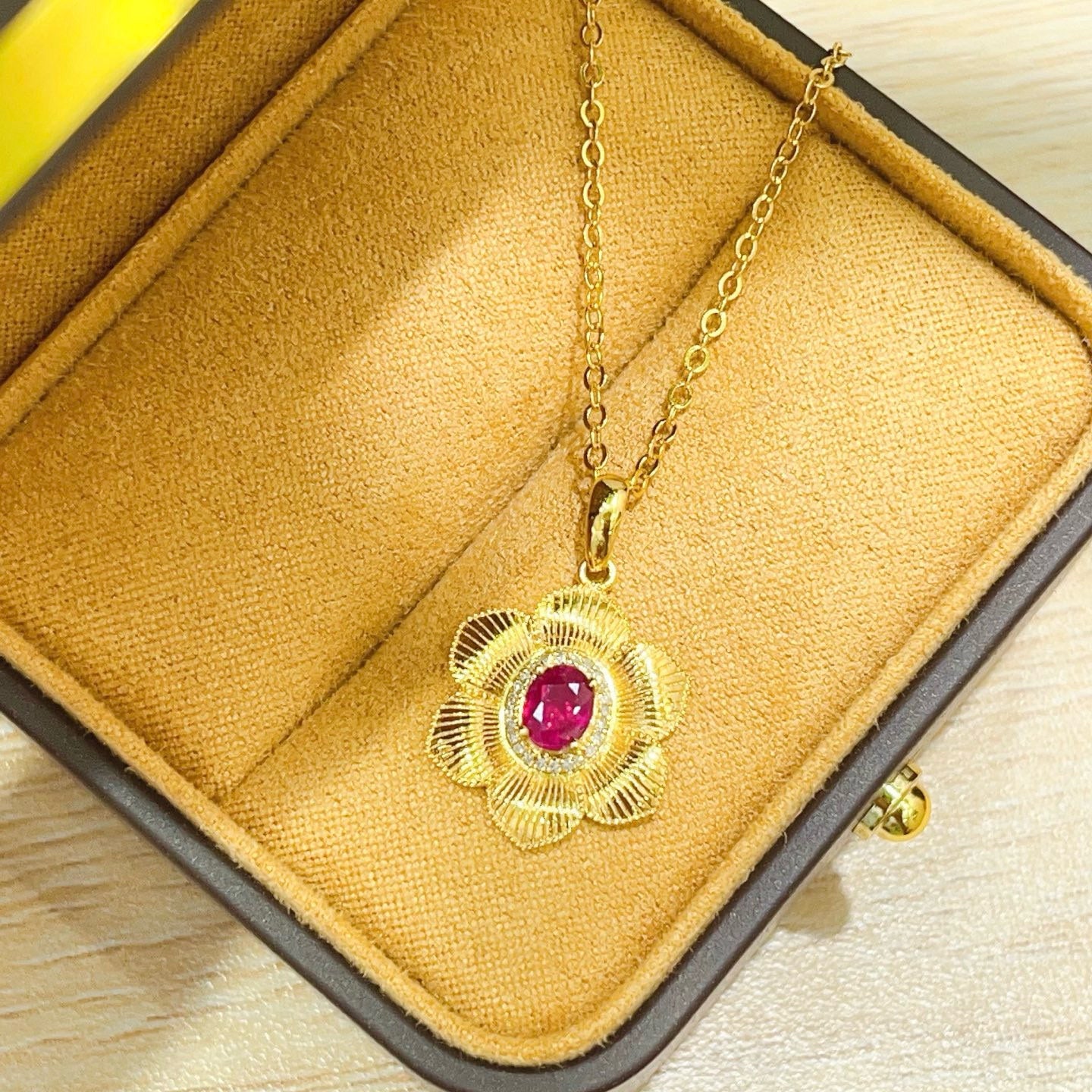 14K GOLD 0.58 CT NATURAL RUBY & DIAMOND PENDANT( WITHOUT CHAIN )