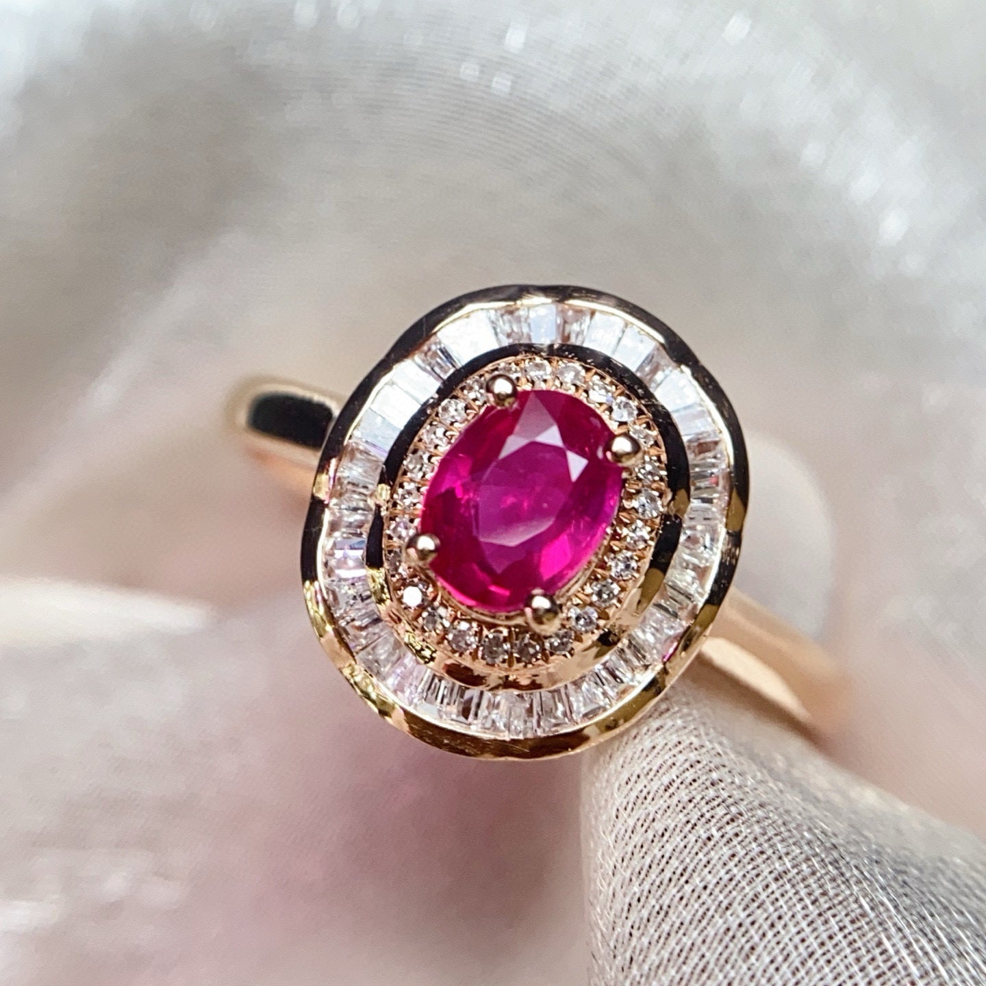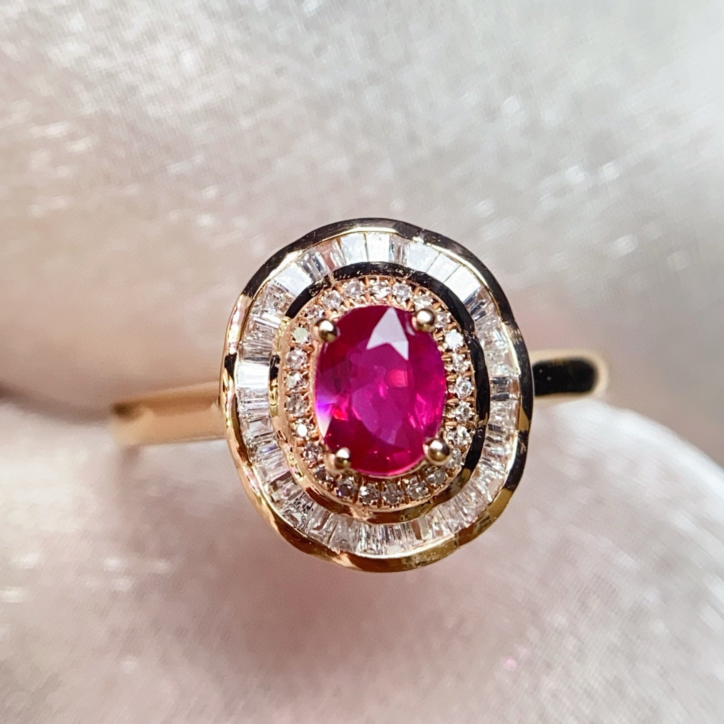 Ref:231021132 // Gold Content:14K Gold // Ring Size:7.25US // // Main Gemstone:Ruby // Shape:Oval // Carat Weight:0.58ct // Color:Red // Treatment:Natural // // Adjacent Gemstone 2 : Diamond // Number of stones:62 // Shape:Multiply // Clarity Grade:VS-SI // Color:H // Treatment:Natural //