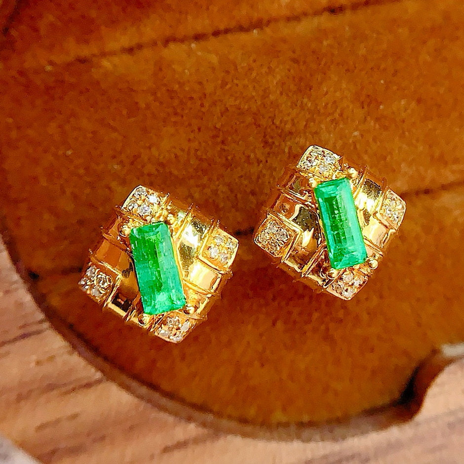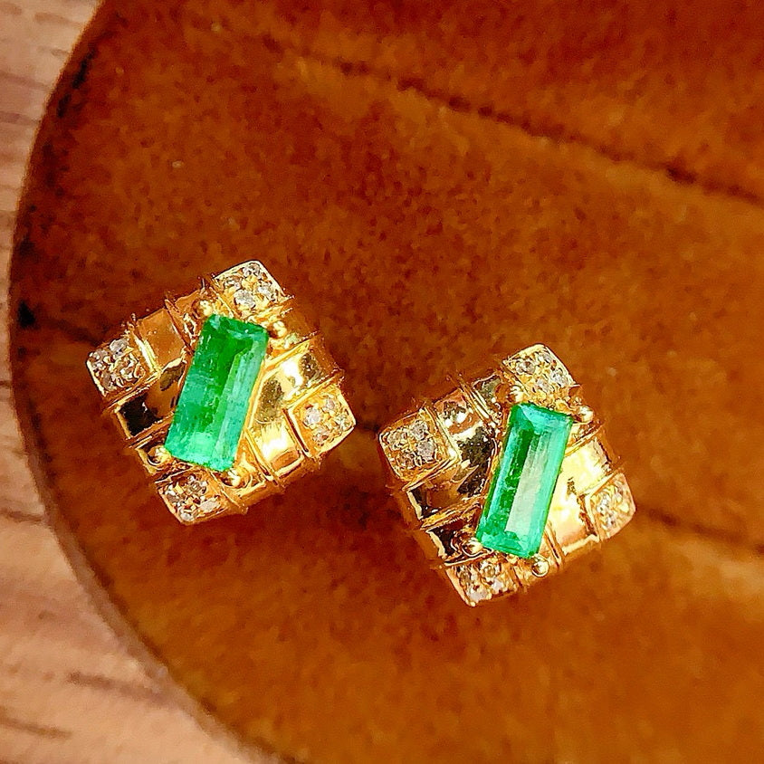 14K GOLD 0.6 CT NATURAL EMERALD & DIAMOND EARRINGS
