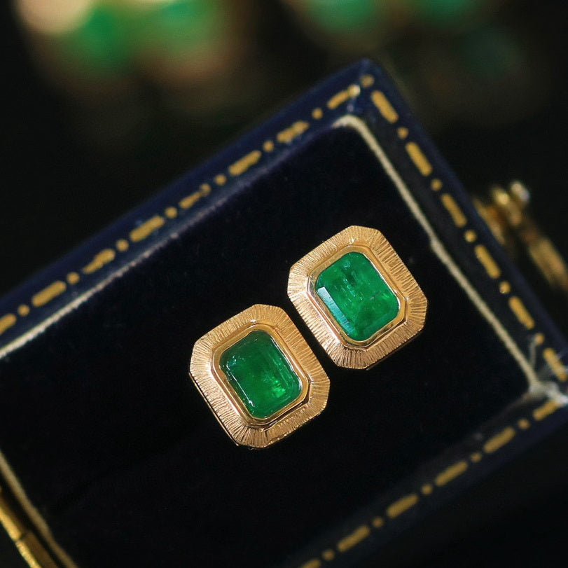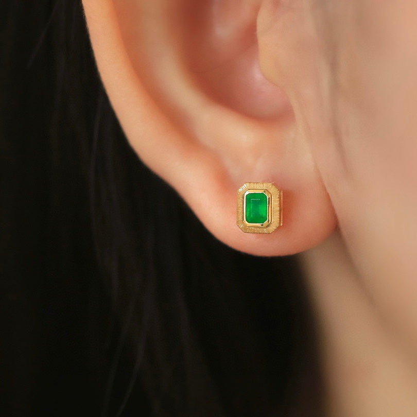 14K GOLD 0.6 CT NATURAL EMERALD EARRINGS