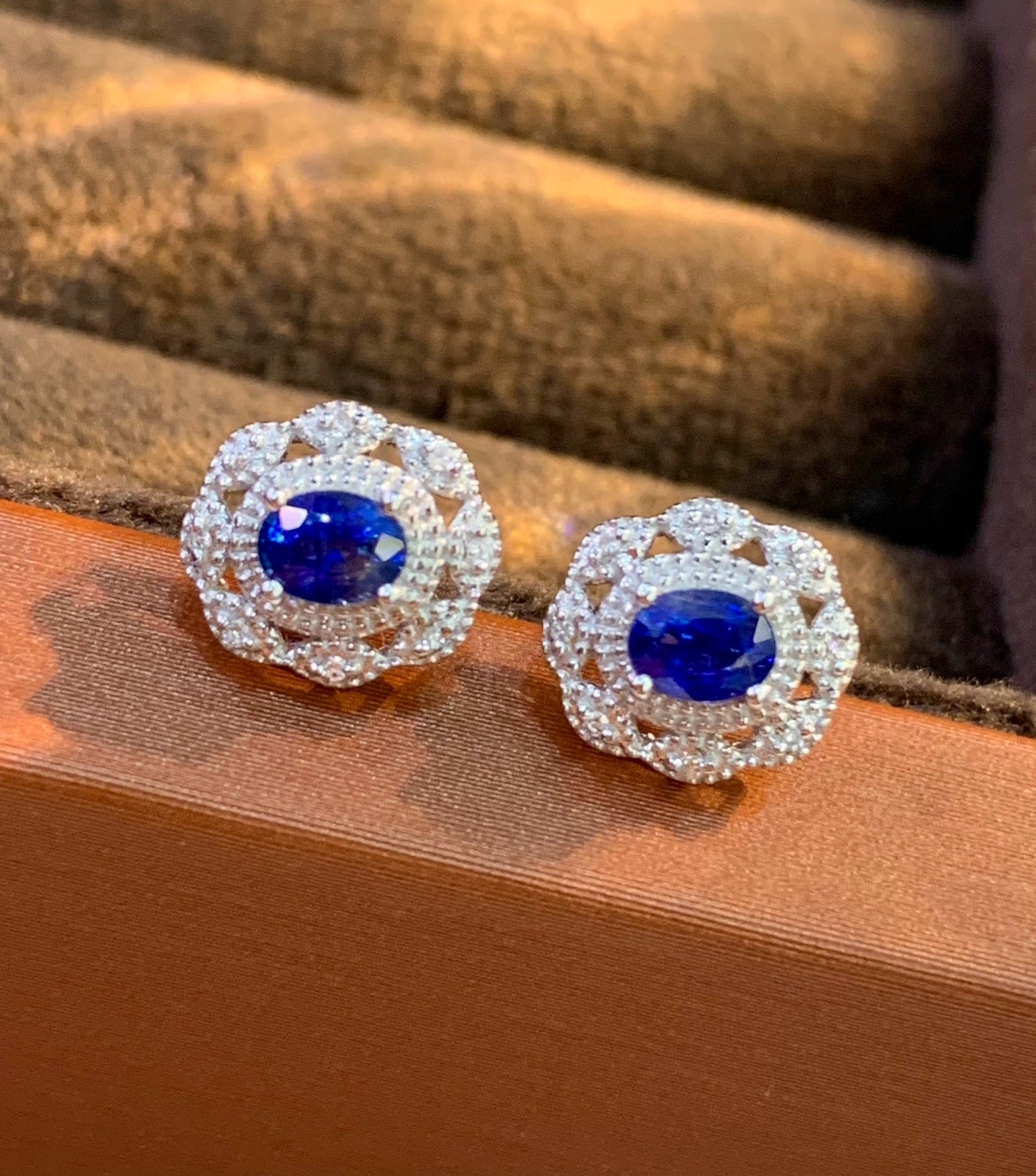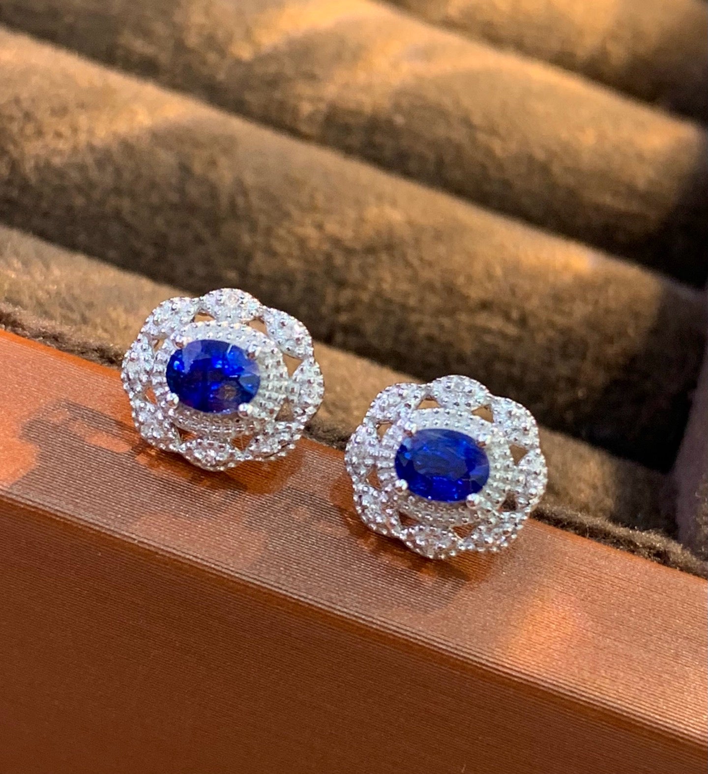 Ref:231025201 // Gold Content:14K Gold // Main Gemstone:Sapphire // Shape:Oval // Carat Weight:0.6ct // Color:Blue // Treatment:Natural // // Adjacent Gemstone 2 : Diamond // Number of stones:16 // Shape:Round // Clarity Grade:VS-SI // Color:H // Treatment:Natural // Cut Grade:G //
