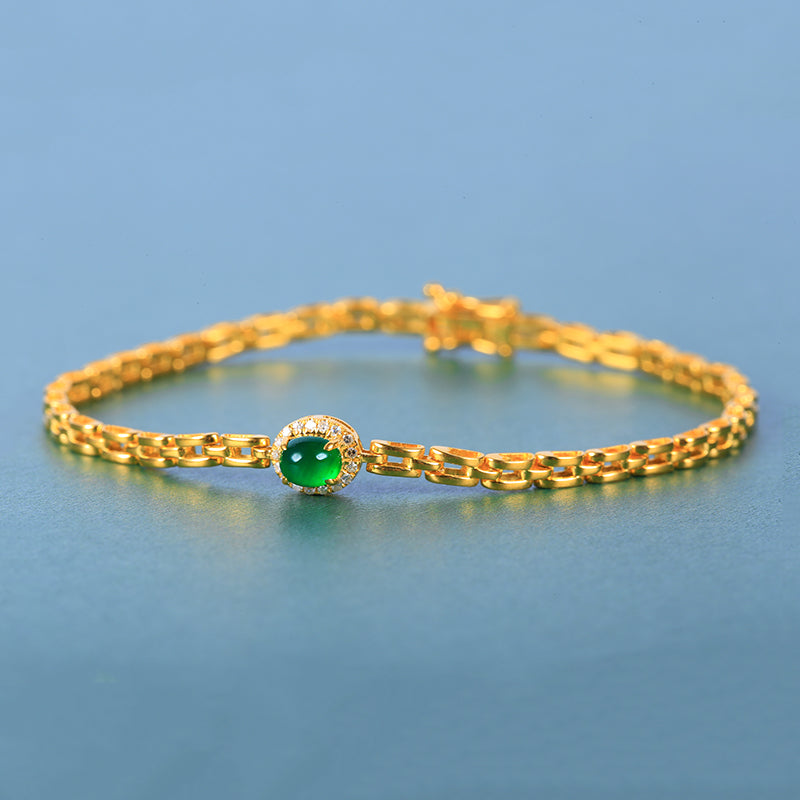 14K GOLD 0.60 CTW VIVID GREEN NATURAL EMERALD & DIAMOND BRACELET