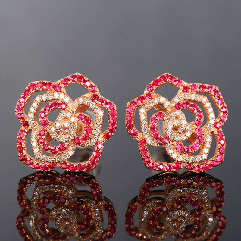 Ref:231021038 // Gold Content:14K Gold // Main Gemstone:Ruby // Shape:Round // Carat Weight:0.36ct // Color:Red // Treatment:Natural // Cut Grade:G // // Adjacent Gemstone 2 : Diamond // Number of stones:86 // Shape:Round // Carat Weight:0.26ct // Clarity Grade:VS-SI // Color:H // Treatment:Natural // Cut Grade:G //