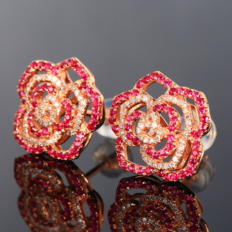 14K GOLD 0.62 CTW NATURAL RUBY & DIAMOND EARRINGS