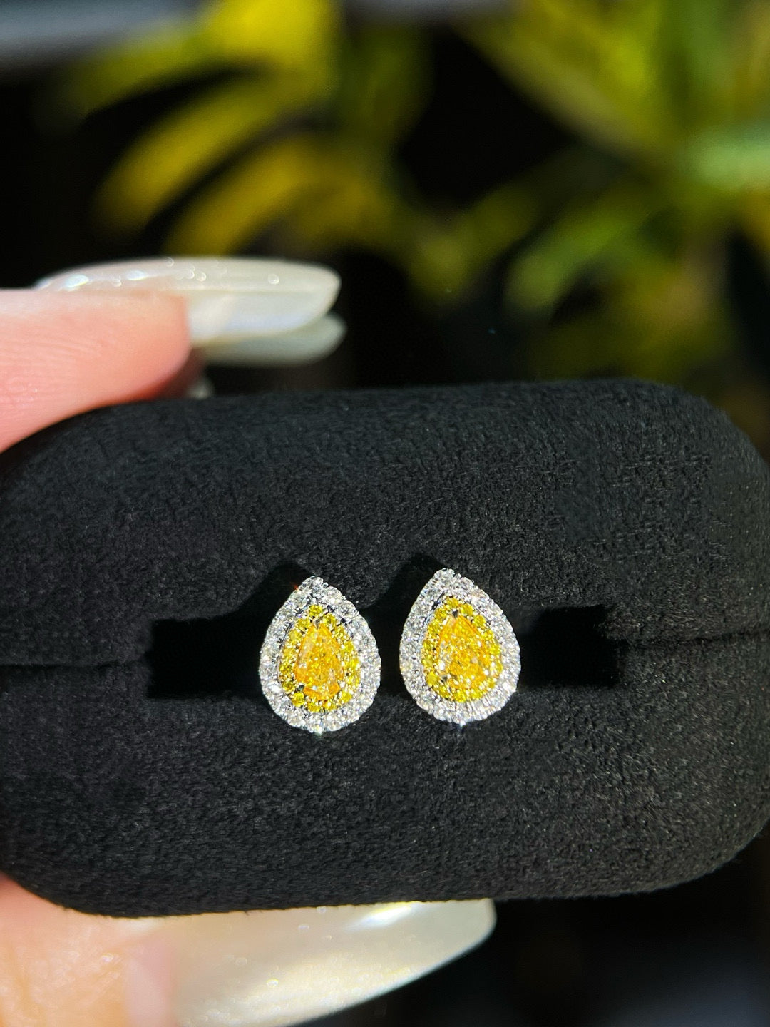 Ref:231025156 // Gold Content:14K Gold // Main Gemstone:Yellow Diamond // Shape:Pear // Carat Weight:0.34ct // Color:Yellow // Treatment:Natural // // Adjacent Gemstone 2 : Diamond // Shape:Round // Carat Weight:0.28ct // Clarity Grade:VS-SI // Color:H // Treatment:Natural // Cut Grade:G //