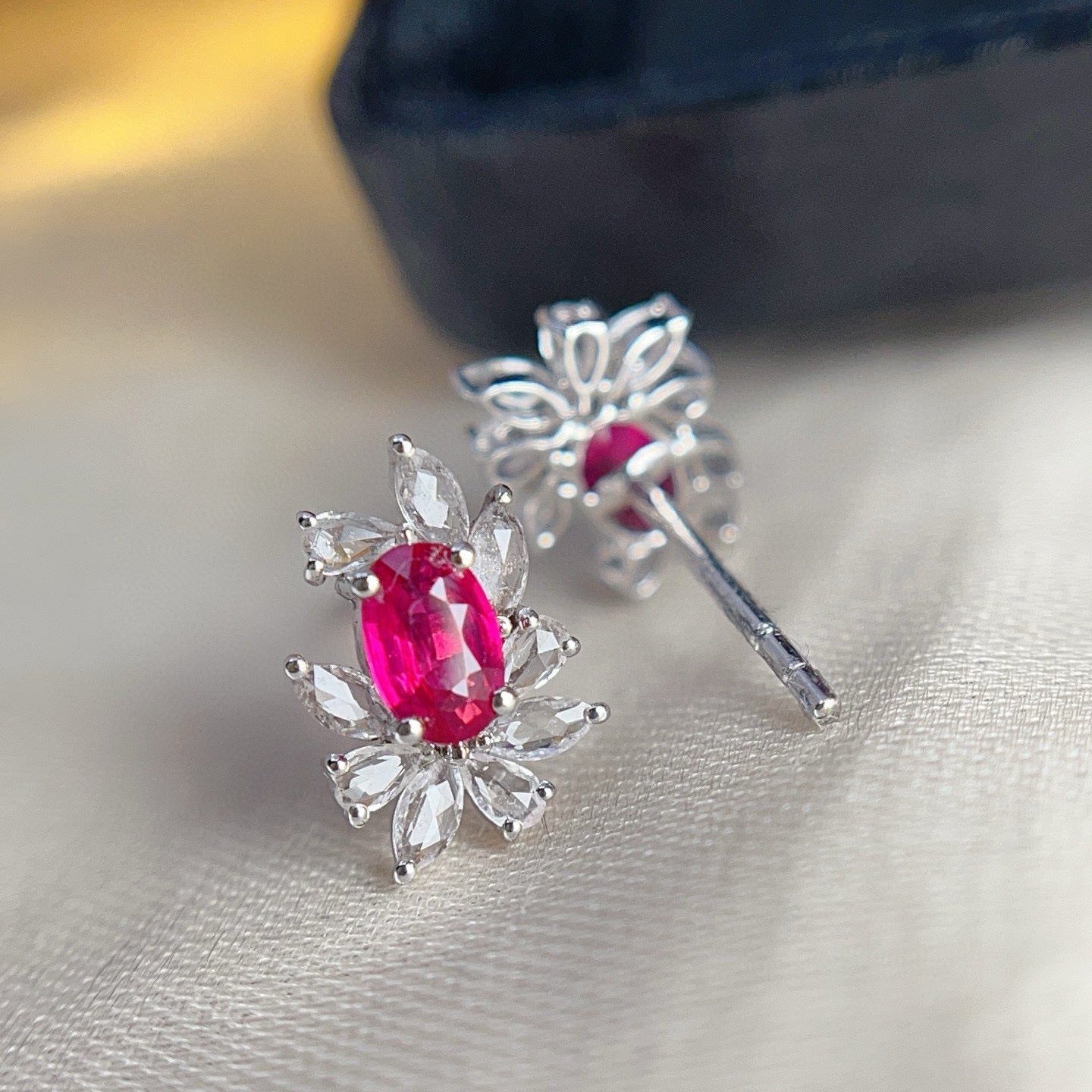 Ref:231021199 // Gold Content:14K Gold // Main Gemstone:Ruby // Shape:Oval // Carat Weight:0.65ct // Color:Red // Treatment:Natural // // Adjacent Gemstone 2 : Sapphire // Number of stones:18 // Shape:Multiply // Color:White // Treatment:Natural //