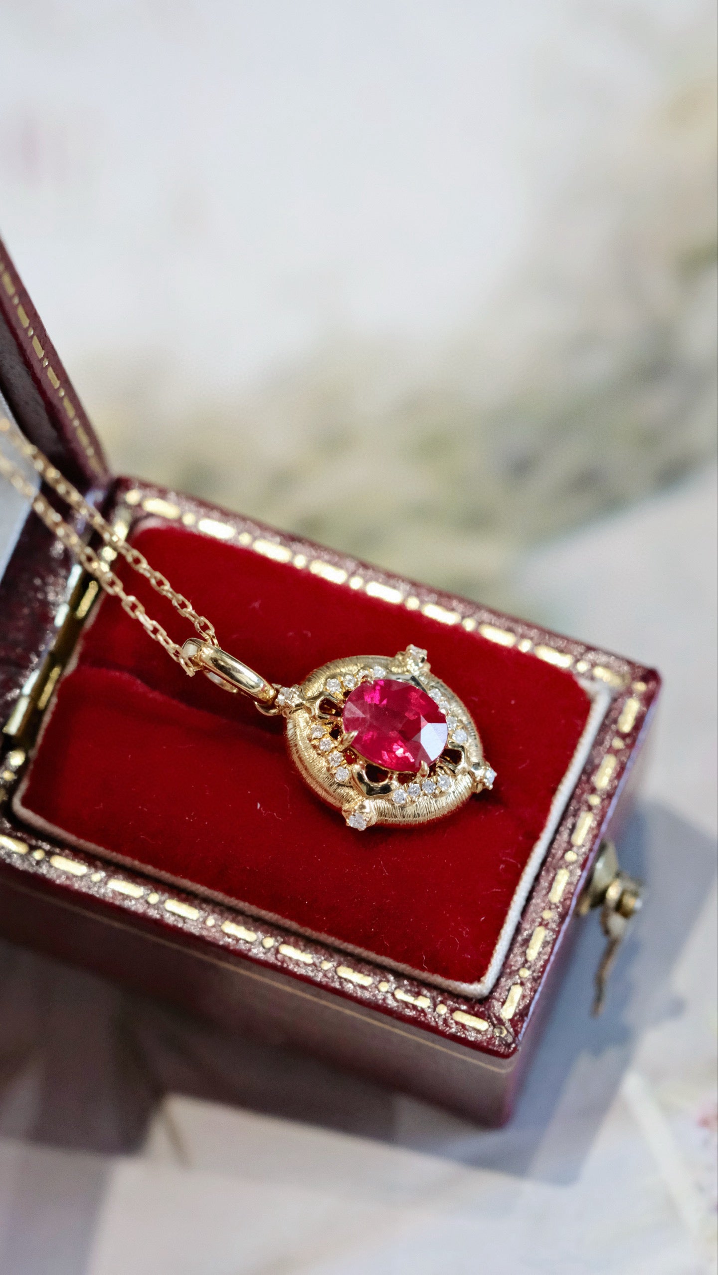 Ref:231025142 // Gold Content:14K Gold // Main Gemstone:Ruby // Shape:Oval // Carat Weight:0.65ct // Color:Red // Treatment:Natural // // Adjacent Gemstone 2 : Diamond // Shape:Round // Carat Weight:0.04ct // Clarity Grade:VS-SI // Color:H // Treatment:Natural // Cut Grade:G //