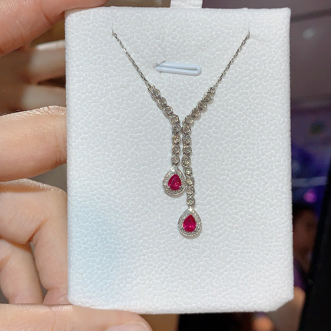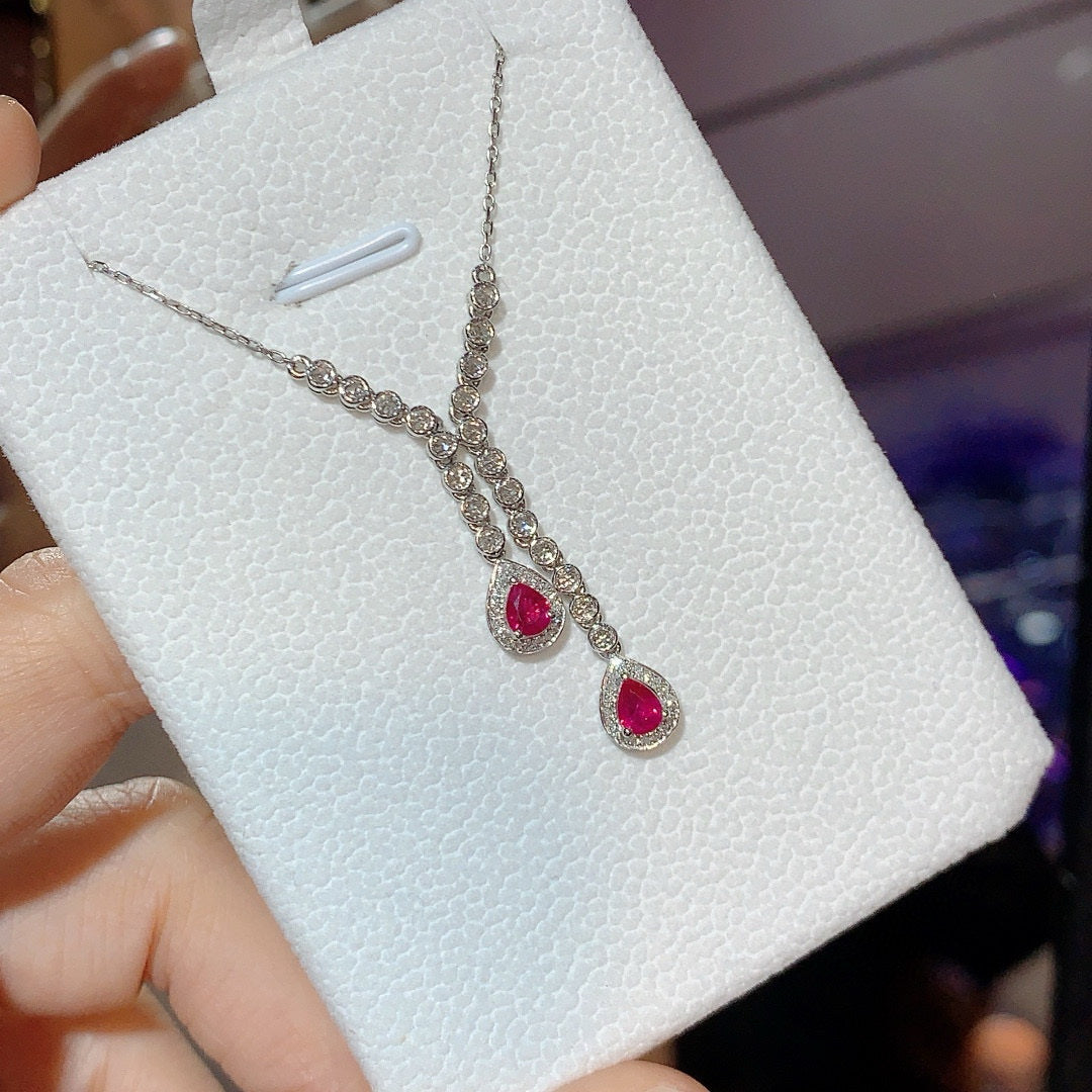 Ref:231023217 // Gold Content:14K Gold // Main Gemstone:Ruby // Shape:Pear // Carat Weight:0.7ct // Color:Red // Treatment:Natural // // Adjacent Gemstone 2 : Diamond // Number of stones:40 // Shape:Round // Clarity Grade:VS-SI // Color:H // Treatment:Natural // Cut Grade:G // // Adjacent Gemstone 3 : Sapphire // Number of stones:20 // Shape:Round // Color:White // Treatment:Natural // Cut Grade:G //