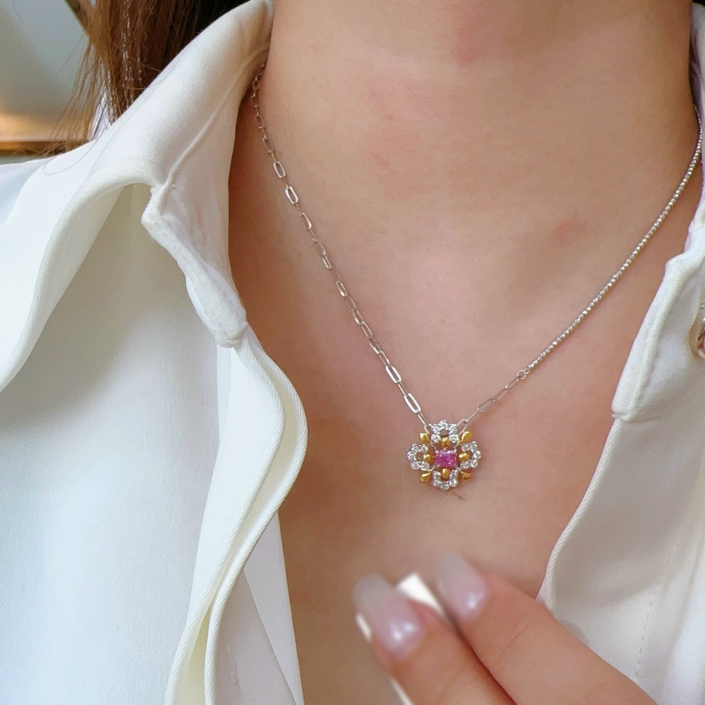 Ref:231023129 // Gold Content:14K Gold // Main Gemstone:Sapphire // Shape:Octagonal // Carat Weight:0.4ct // Color:Pink // Treatment:Natural // // Adjacent Gemstone 2 : Diamond // Shape:Round // Carat Weight:0.3ct // Clarity Grade:VS-SI // Color:H // Treatment:Natural // Cut Grade:G //