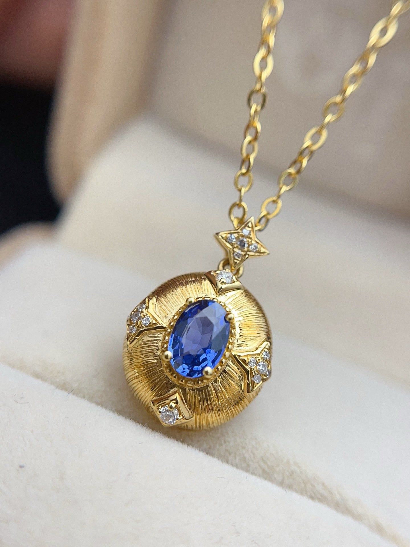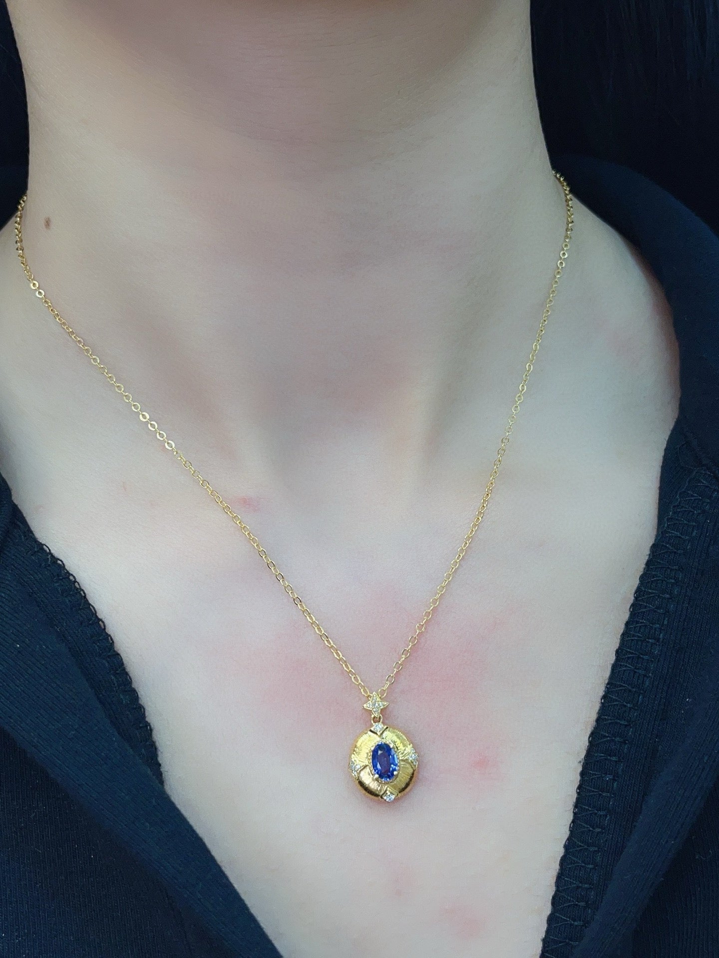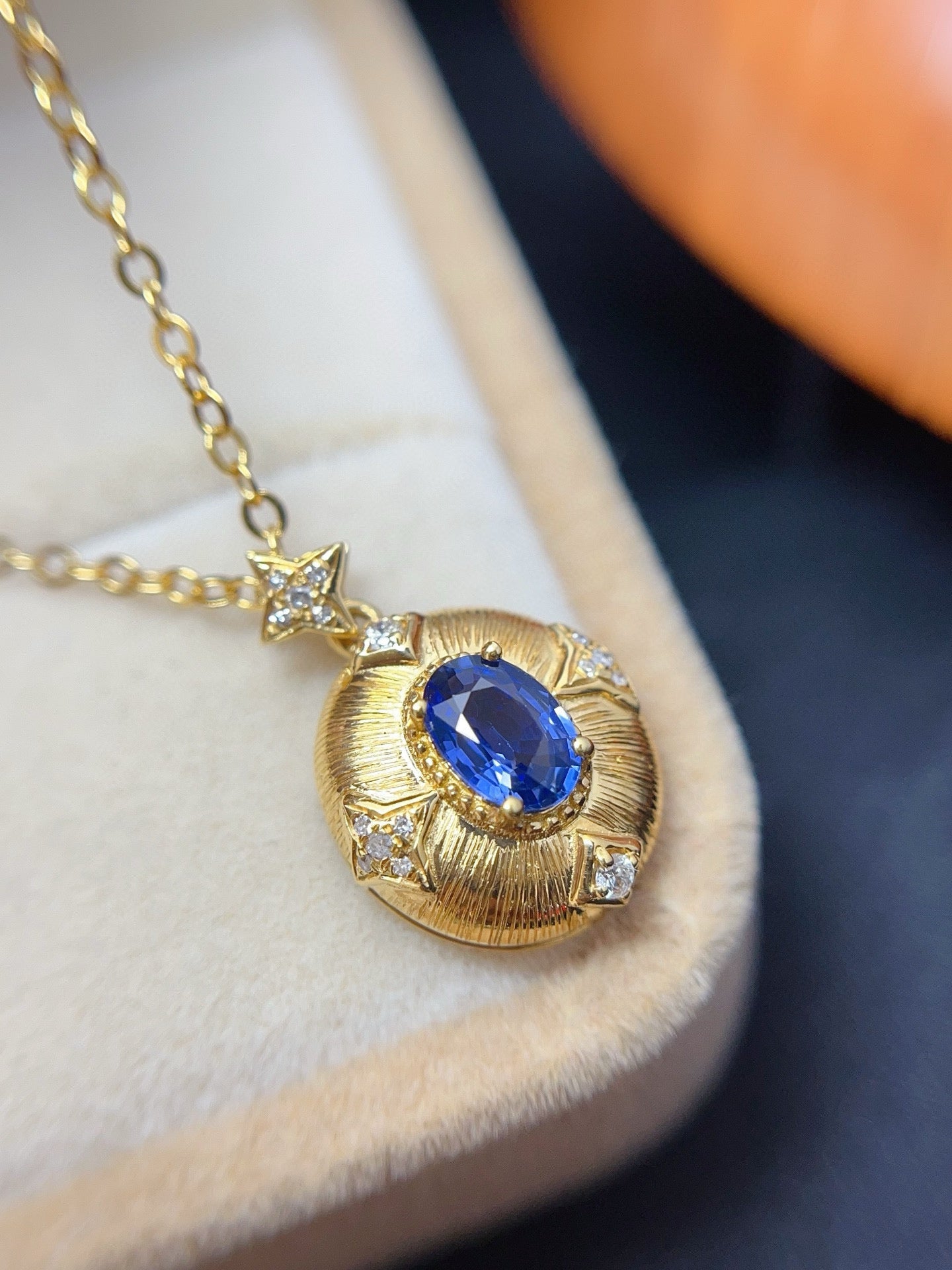 Ref:231027199 // Gold Content:14K Gold // Main Gemstone:Sapphire // Shape:Oval // Carat Weight:0.70ct // Color:Blue // Treatment:Natural // // Adjacent Gemstone 2 : Diamond // Number of stones:17 // Shape:Round // Clarity Grade:VS-SI // Color:H // Treatment:Natural // Cut Grade:G //