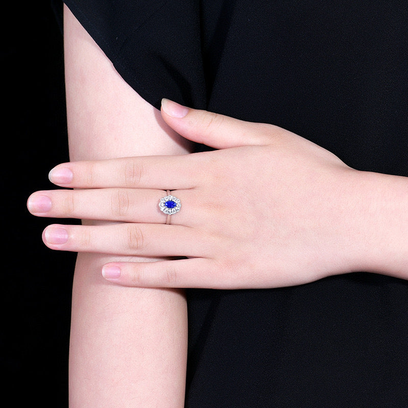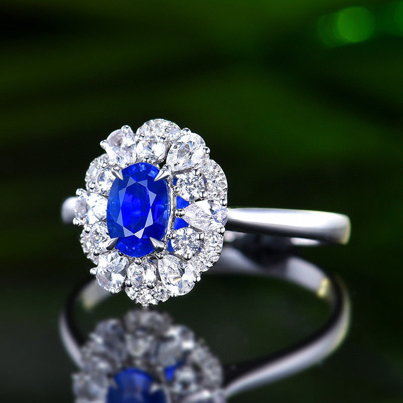 Ref:231019220 // Gold Content:14K Gold // Ring Size:7.25US // // Main Gemstone:Sapphire // Shape:Oval // Carat Weight:0.65ct // Color:Blue // Treatment:Natural // // Adjacent Gemstone 2 : Diamond // Number of stones:18 // Shape:Round // Carat Weight:0.05ct // Clarity Grade:VS-SI // Color:H // Treatment:Natural // Cut Grade:G // // Adjacent Gemstone 3 : Sapphire // Number of stones:12 // Shape:Multiply // Carat Weight:0.57ct // Color:White // Treatment:Natural //