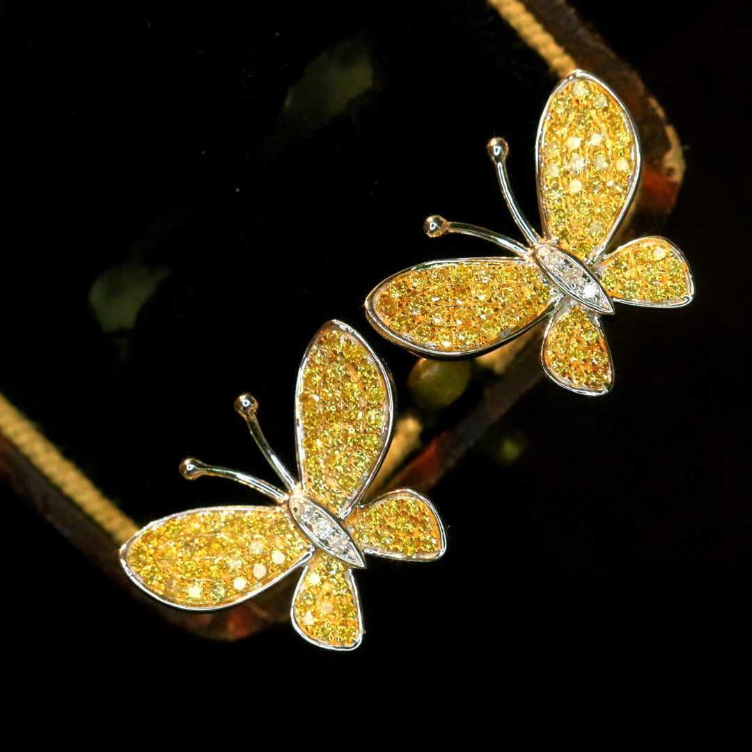 14K GOLD 0.72 CT NATURAL COLOR DIAMOND & BUTTERFLY EARRINGS
