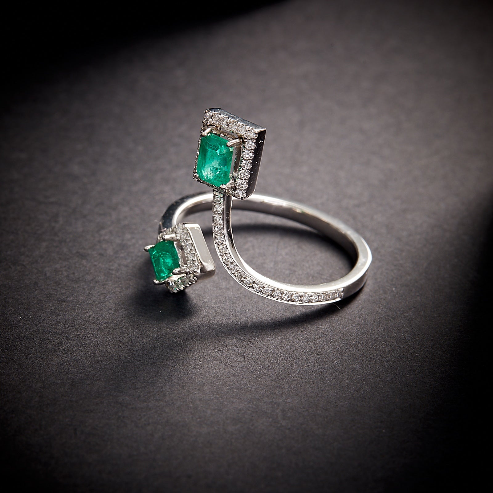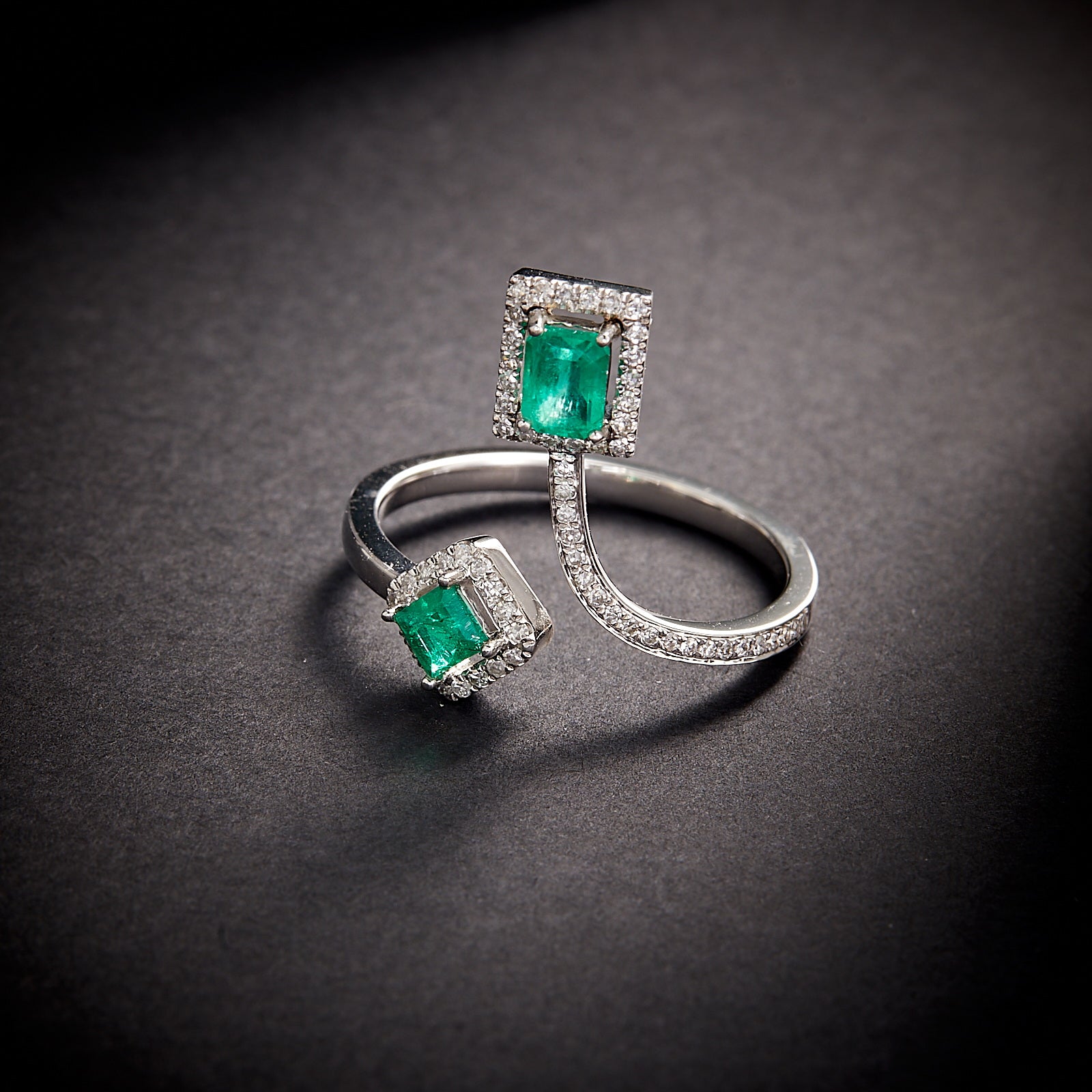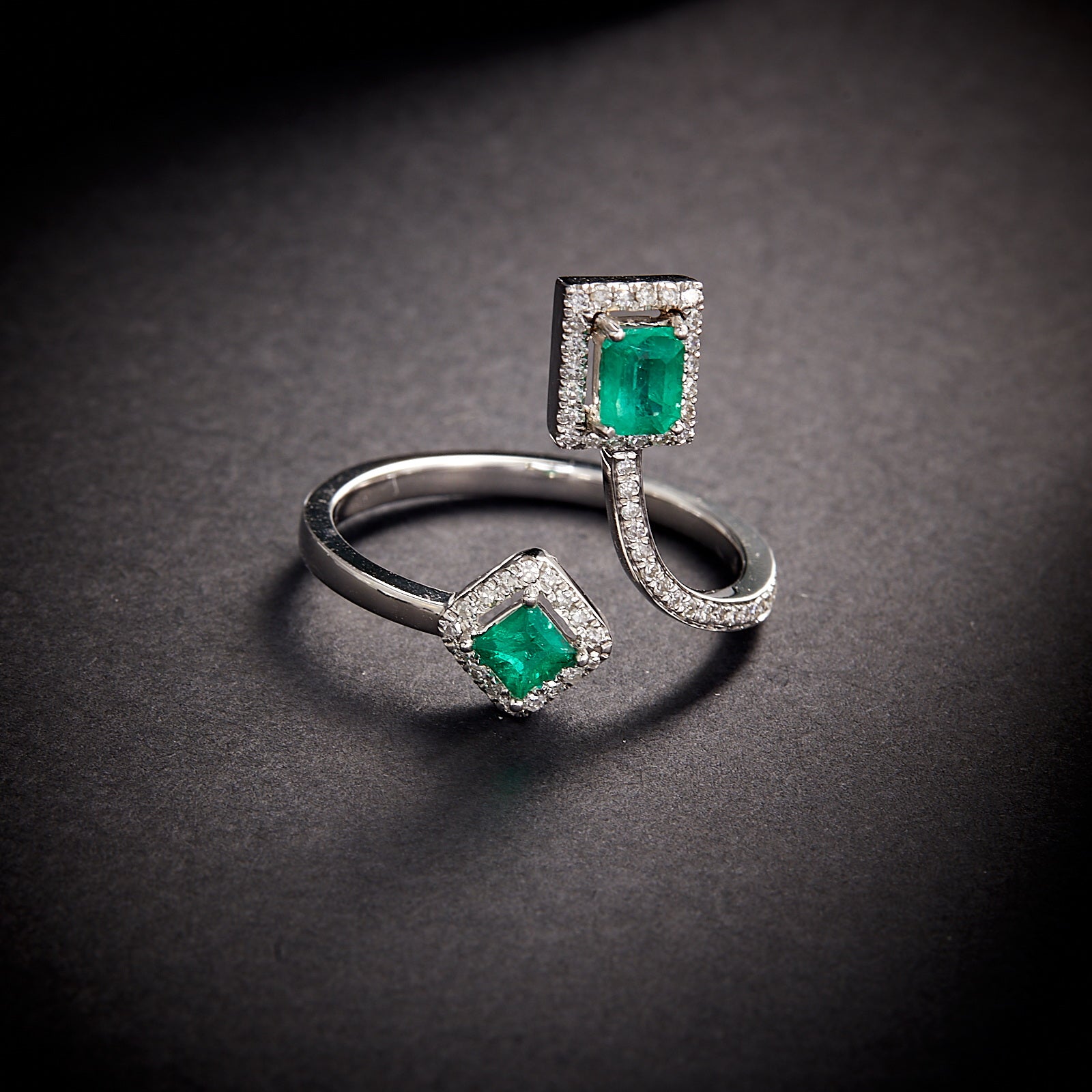 Ref:231027029 // Gold Content:14K Gold // Ring Size:7.25US // // Main Gemstone:Emerald // Shape:Octagonal // Carat Weight:0.55ct // Color:Green // Treatment:Natural // // Adjacent Gemstone 2 : Diamond // Number of stones:58 // Shape:Round // Carat Weight:0.17ct // Clarity Grade:VS-SI // Color:H // Treatment:Natural // Cut Grade:G //