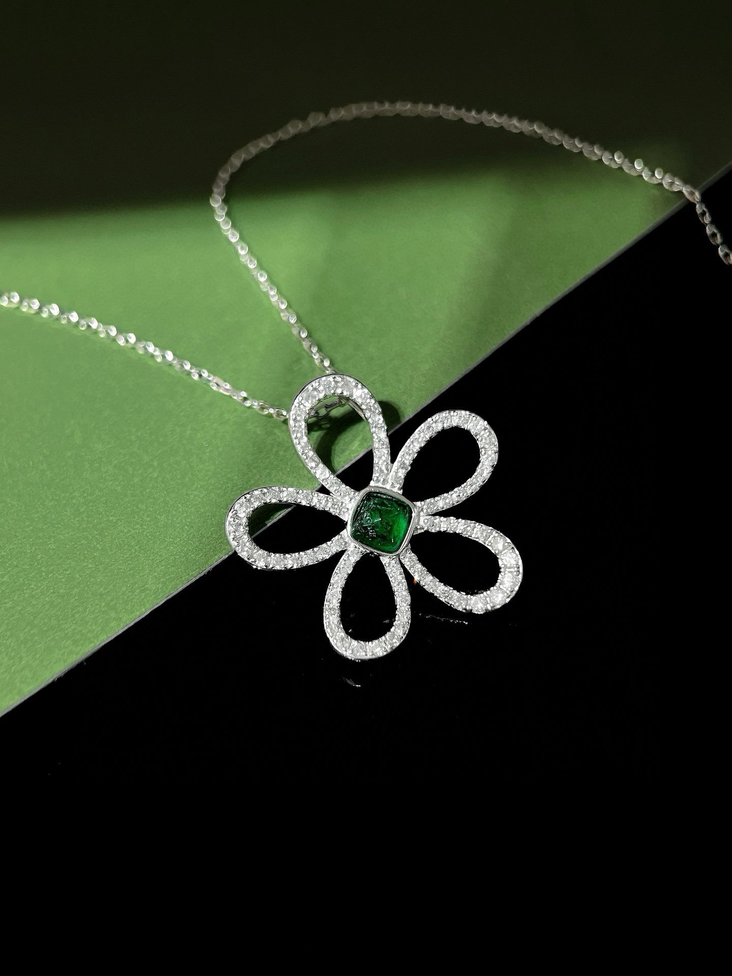 Ref:231025007 // Gold Content:14K Gold // Main Gemstone:Emerald // Shape:Suger-Loaf // Carat Weight:0.3ct // Color:Vivid Green // Treatment:Natural // // Adjacent Gemstone 2 : Diamond // Shape:Round // Carat Weight:0.42ct // Clarity Grade:VS-SI // Color:H // Treatment:Natural // Cut Grade:G //