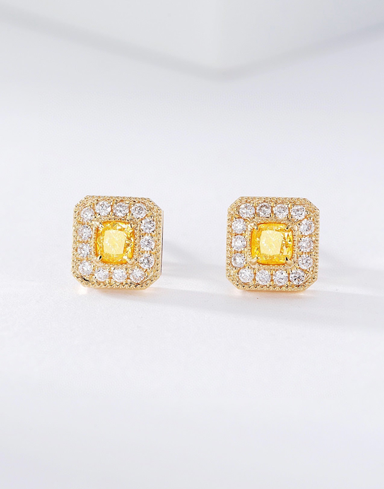 Ref:231025117 // Gold Content:14K Gold // Main Gemstone:Yellow Diamond // Shape:Cushion // Carat Weight:0.5ct // Color:Yellow // Treatment:Natural // // Adjacent Gemstone 2 : Diamond // Shape:Round // Carat Weight:0.25ct // Clarity Grade:VS-SI // Color:H // Treatment:Natural // Cut Grade:G //
