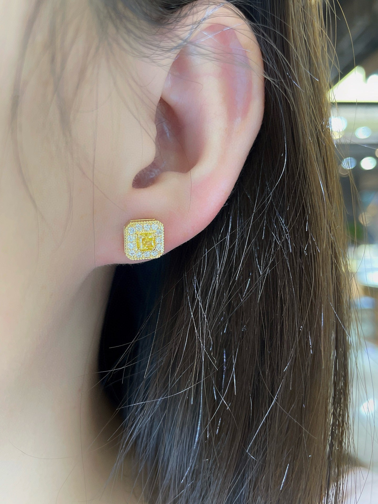 14K GOLD 0.75 CTW NATURAL YELLOW DIAMOND & DIAMOND EARRINGS