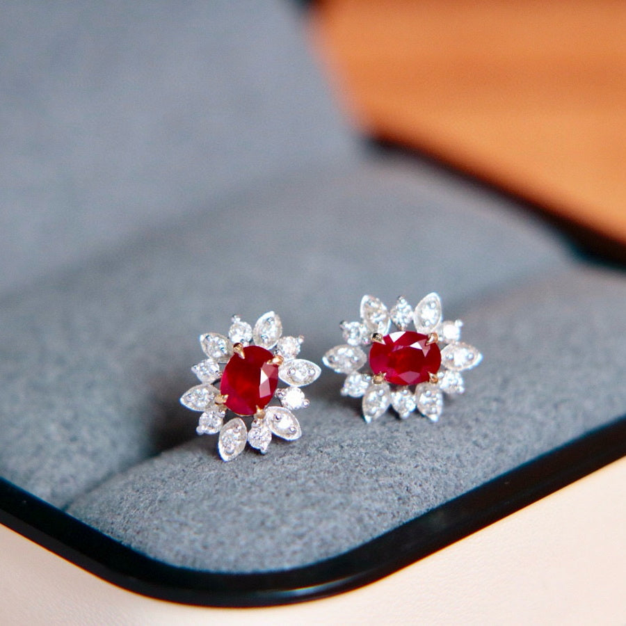 14K GOLD 0.76 CTW NATURAL RUBY & DIAMOND EARRINGS