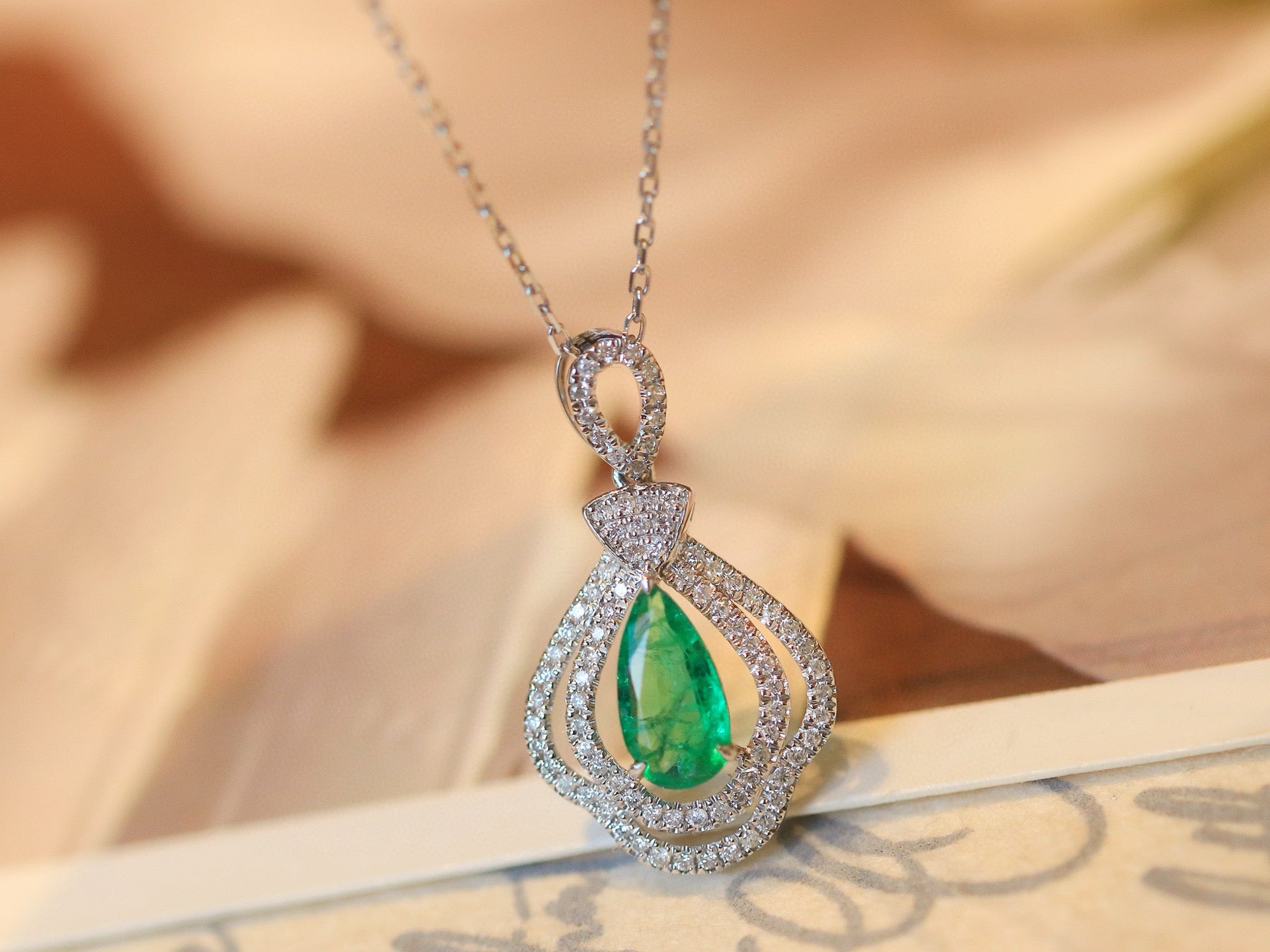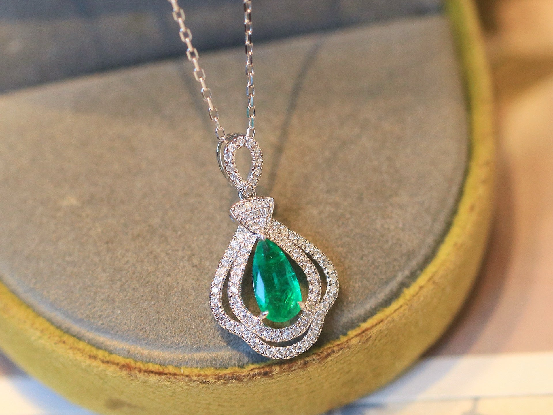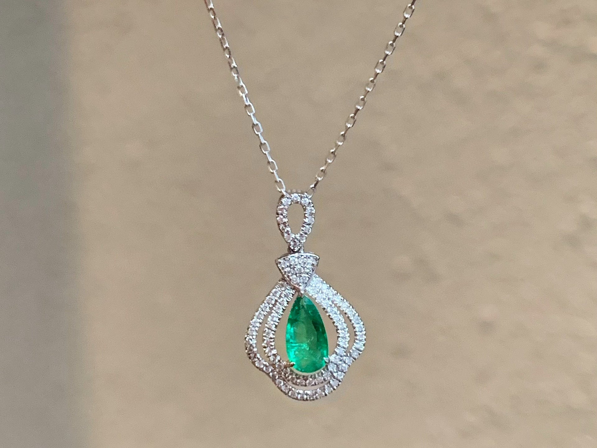 Ref:231025127 // Gold Content:14K Gold // Main Gemstone:Emerald // Shape:Pear // Carat Weight:0.53ct // Color:Green // Treatment:Natural // // Adjacent Gemstone 2 : Diamond // Shape:Round // Carat Weight:0.25ct // Clarity Grade:VS-SI // Color:H // Treatment:Natural // Cut Grade:G //